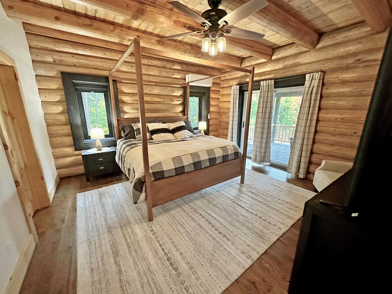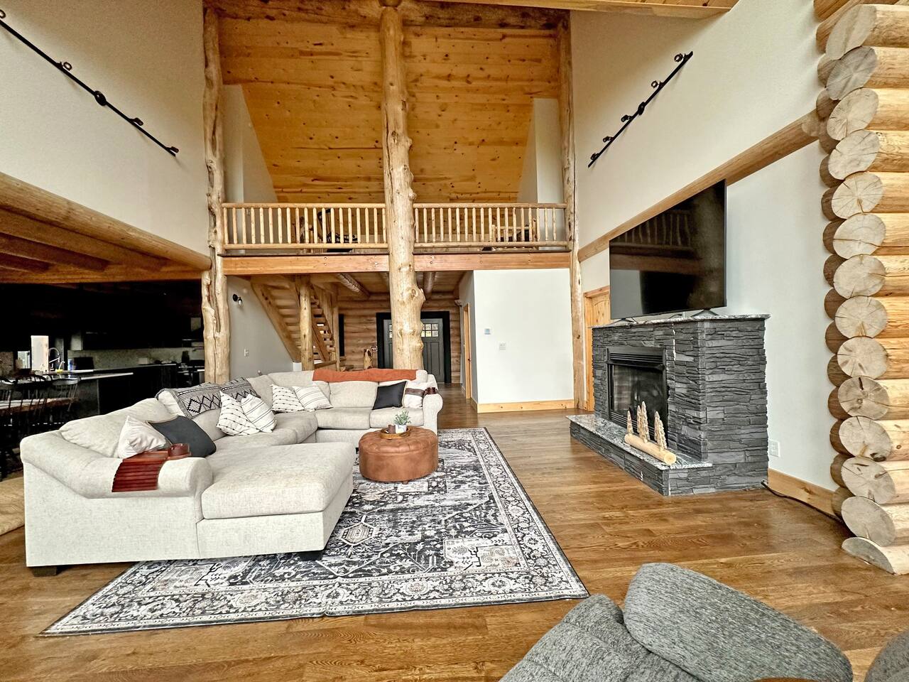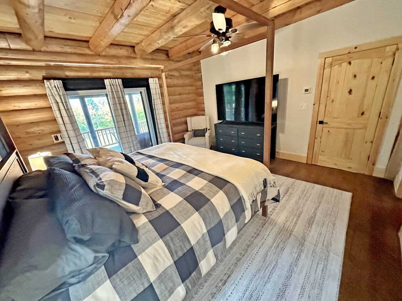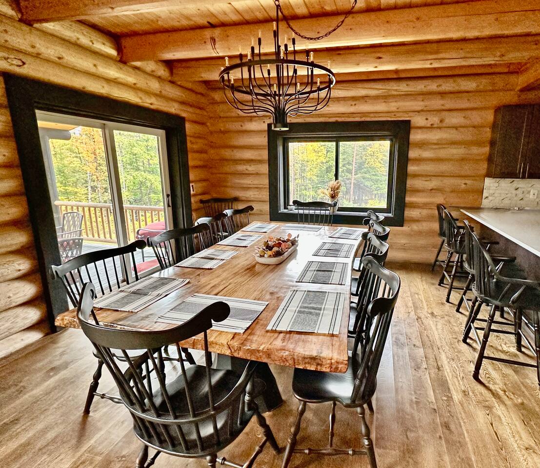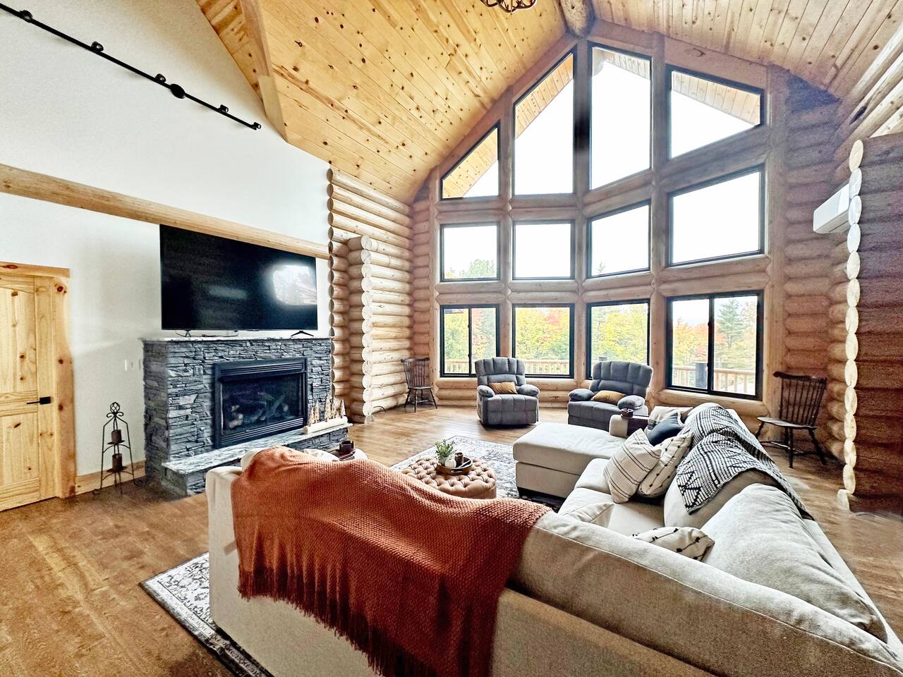 This spacious 6-bedroom log home in Albany, NH, is perfect for large groups. Located near the scenic Kancamagus Highway, it offers a true rustic retreat in the White Mountains. Surrounded by serene pine forests, this charming log home offers comfort and privacy while being close to trails and attractions. Perfect for those seeking a peaceful mountain getaway. The living room, with its soaring ceilings and large windows, is filled with natural light and ideal for cozying up by the fireplace or gathering for games and conversation. An open kitchen and dining area sit adjacent to the living room, designed with entertaining in mind. The full kitchen offers modern appliances and ample counter space for preparing meals for a crowd, while a large dining table provides room for everyone to enjoy meals together. MAIN LIVING AREA - Living Room - Dining Room - Full Kitchen - Master Bedroom Suite with Full Bath - Entry way with half bath - Porch with seating SECOND FLOOR - Loft area with day bed - 3 bedrooms with queen beds - Full bath Downstairs, a spacious family room provides an additional gathering space, complete with comfortable seating, a kitchenette, and entertainment options. LOWER LEVEL - Large family room / game room with reclining chairs and a pool table - Kitchenette - Breakfast table - Bedroom with a king bed, sliders to patio, and attached 3/4 bath - Bedroom with two sets of bunk beds (4 double beds and 2 twins total) - Patio access Outside, the property is surrounded by towering pines, offering privacy and a sense of seclusion while still being conveniently close to local attractions and trails including North Conway Village and several different ski resorts. Perfectly positioned for exploring the beauty of New Hampshire's White Mountains, this home offers both comfort and a true taste of nature. Whether you’re here to ski, hike, or simply unwind, this charming log home is a peaceful retreat for your group. OTHER FEATURES - Attached 2-car garage - Driveway with ample parking xSTR DETAILS & SUPPLIES - Bedding: Bed Linens and bath towels - Toiletries: shampoo, conditioner, body wash, and cotton swabs in each bathroom - Kitchen supplies: pots & pans, dinnerware, bakeware, plasticware for children, toaster, blender, dual coffee maker (K-cup and drip), glassware, food storage containers, wine glasses, and more! - Paper goods: paper towels, toilet paper, dishwasher tablets, laundry pods, and trash bags - Coffee/Tea: A few starter supplies for coffee and tea.
