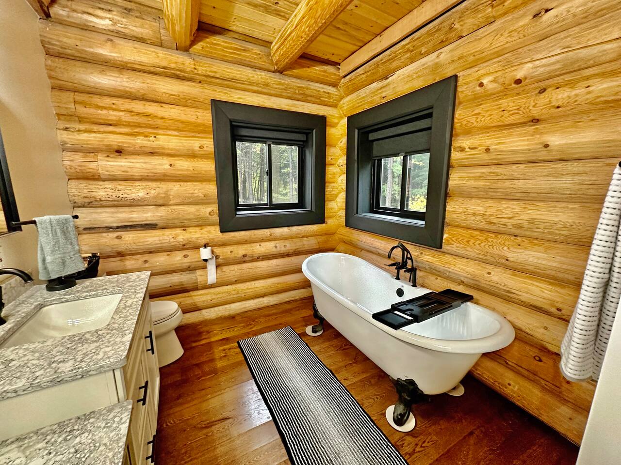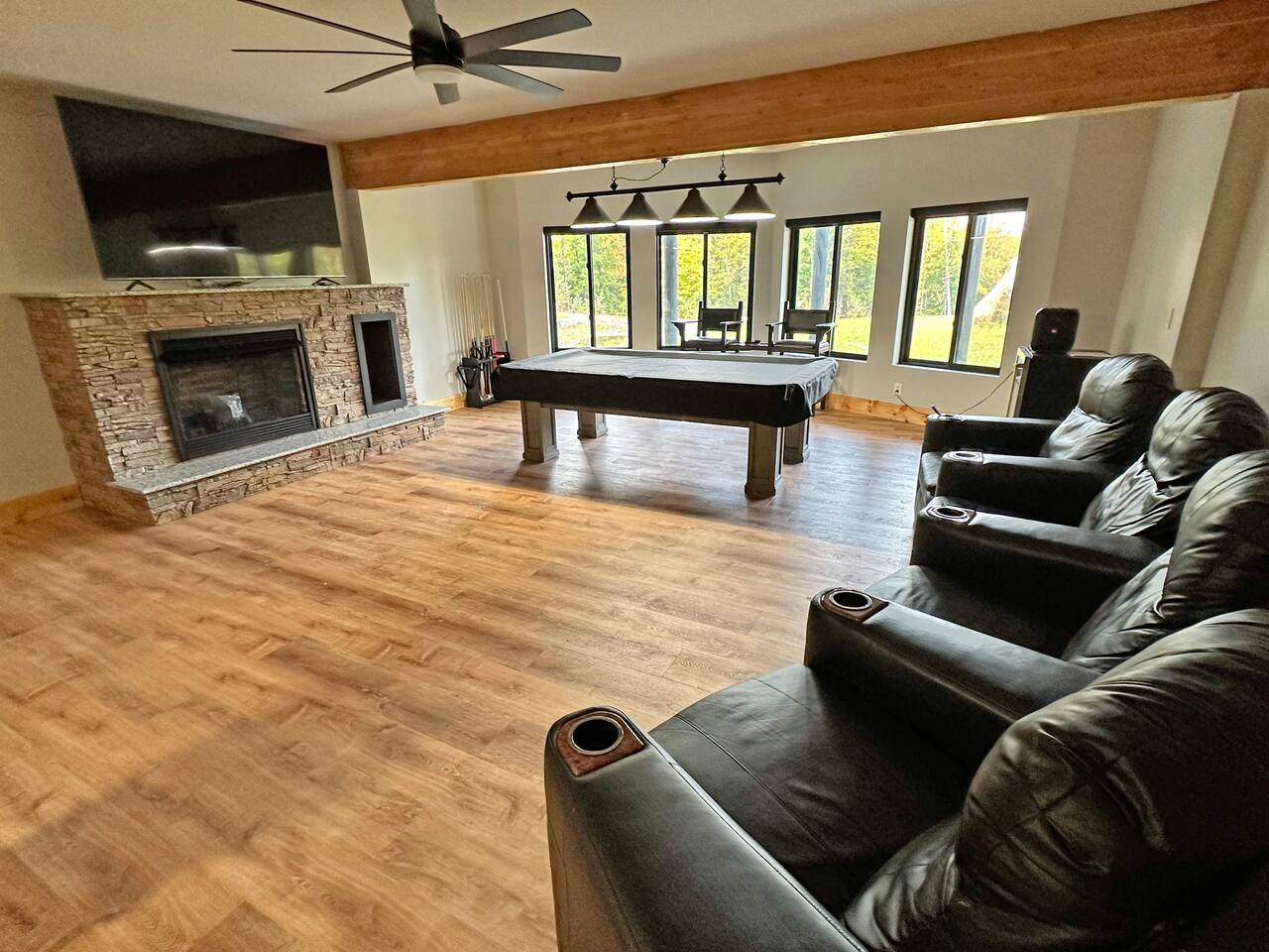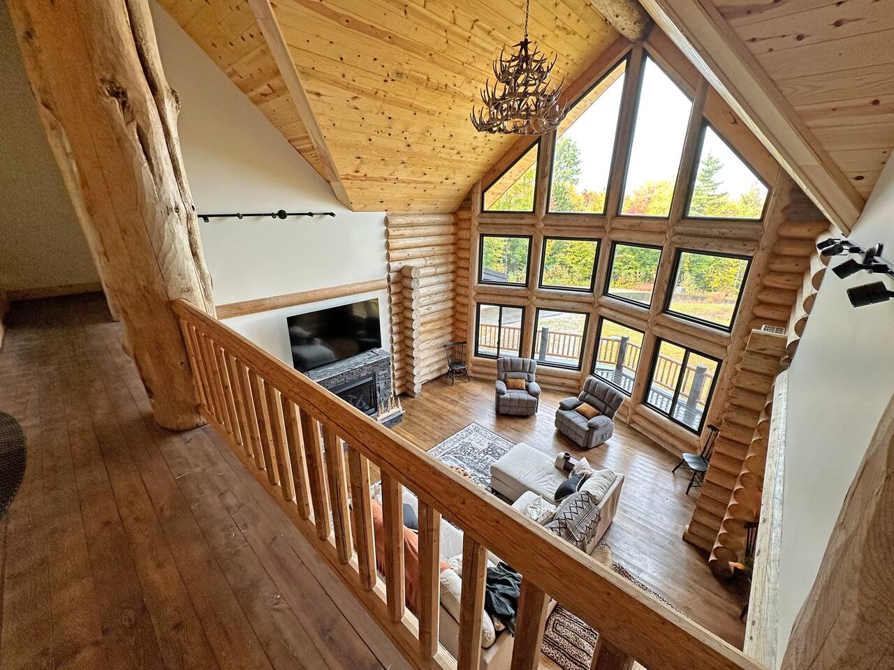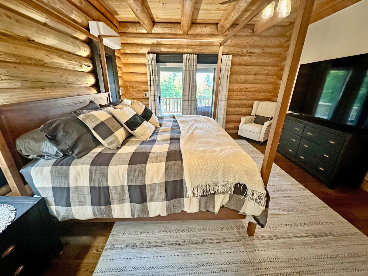 This spacious 6-bedroom log home in Albany, NH, is perfect for large groups. Located near the scenic Kancamagus Highway, it offers a true rustic retreat in the White Mountains. Surrounded by serene pine forests, this charming log home offers comfort and privacy while being close to trails and attractions. Perfect for those seeking a peaceful mountain getaway. The living room, with its soaring ceilings and large windows, is filled with natural light and ideal for cozying up by the fireplace or gathering for games and conversation. An open kitchen and dining area sit adjacent to the living room, designed with entertaining in mind. The full kitchen offers modern appliances and ample counter space for preparing meals for a crowd, while a large dining table provides room for everyone to enjoy meals together. MAIN LIVING AREA - Living Room - Dining Room - Full Kitchen - Master Bedroom Suite with Full Bath - Entry way with half bath - Porch with seating SECOND FLOOR - Loft area with day bed - 3 bedrooms with queen beds - Full bath Downstairs, a spacious family room provides an additional gathering space, complete with comfortable seating, a kitchenette, and entertainment options. LOWER LEVEL - Large family room / game room with reclining chairs and a pool table - Kitchenette - Breakfast table - Bedroom with a king bed, sliders to patio, and attached 3/4 bath - Bedroom with two sets of bunk beds (4 double beds and 2 twins total) - Patio access Outside, the property is surrounded by towering pines, offering privacy and a sense of seclusion while still being conveniently close to local attractions and trails including North Conway Village and several different ski resorts. Perfectly positioned for exploring the beauty of New Hampshire's White Mountains, this home offers both comfort and a true taste of nature. Whether you’re here to ski, hike, or simply unwind, this charming log home is a peaceful retreat for your group. OTHER FEATURES - Attached 2-car garage - Driveway with ample parking xSTR DETAILS & SUPPLIES - Bedding: Bed Linens and bath towels - Toiletries: shampoo, conditioner, body wash, and cotton swabs in each bathroom - Kitchen supplies: pots & pans, dinnerware, bakeware, plasticware for children, toaster, blender, dual coffee maker (K-cup and drip), glassware, food storage containers, wine glasses, and more! - Paper goods: paper towels, toilet paper, dishwasher tablets, laundry pods, and trash bags - Coffee/Tea: A few starter supplies for coffee and tea.