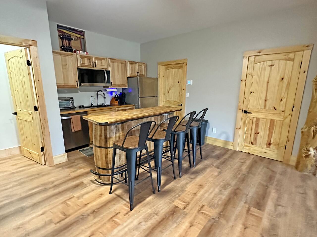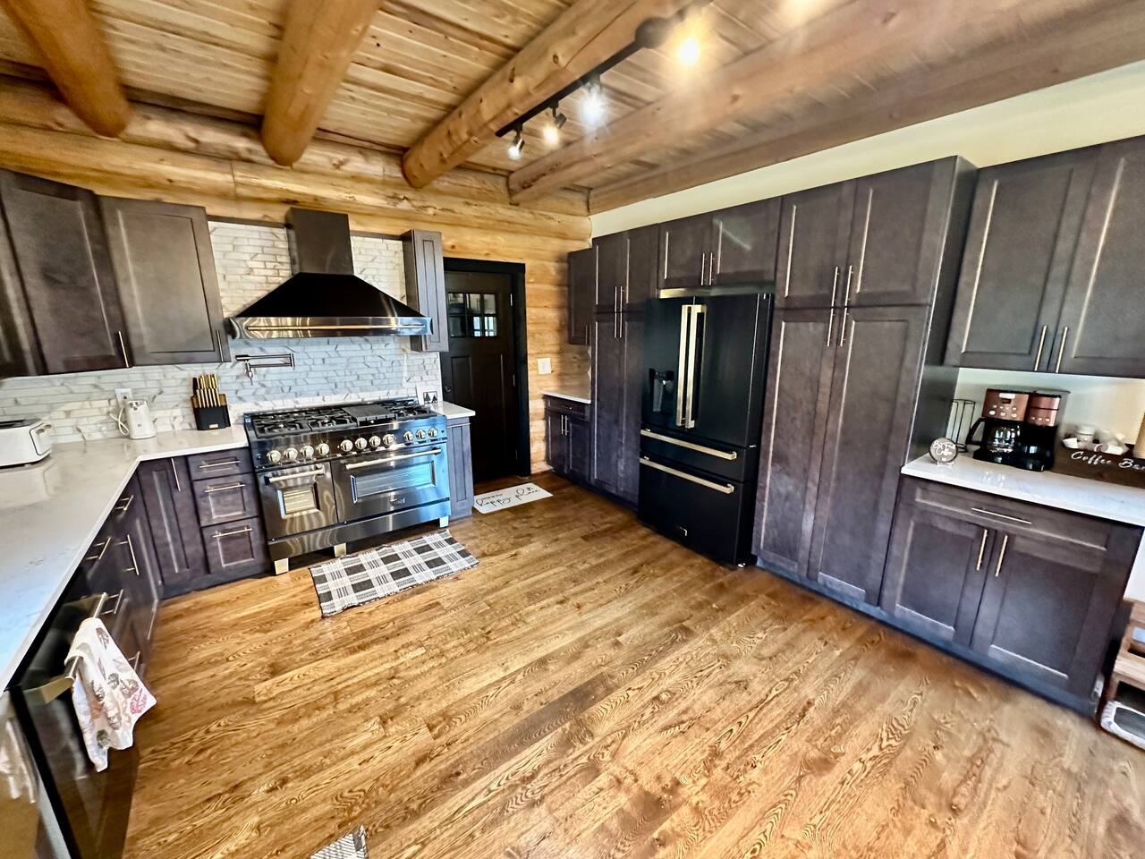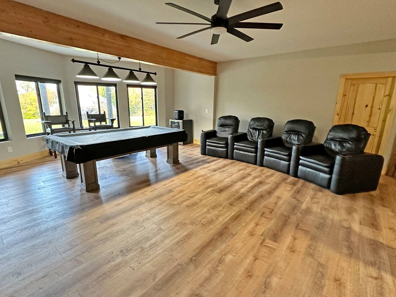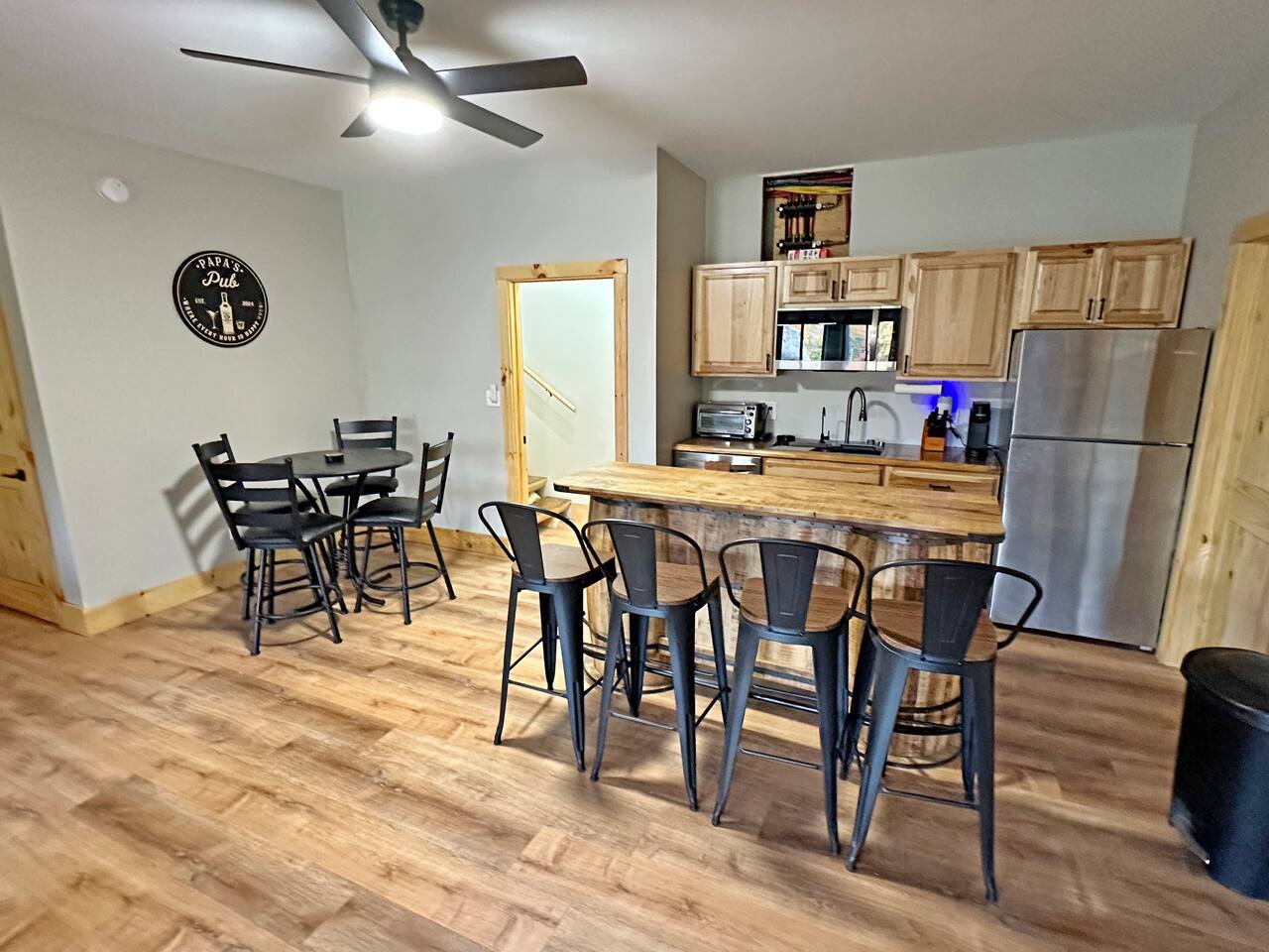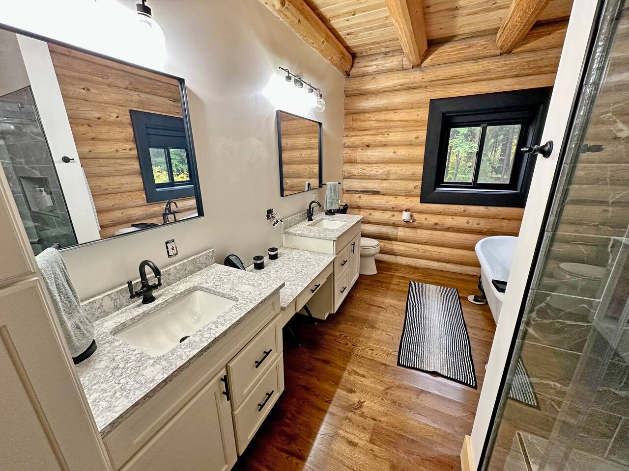 This spacious 6-bedroom log home in Albany, NH, is perfect for large groups. Located near the scenic Kancamagus Highway, it offers a true rustic retreat in the White Mountains. Surrounded by serene pine forests, this charming log home offers comfort and privacy while being close to trails and attractions. Perfect for those seeking a peaceful mountain getaway. The living room, with its soaring ceilings and large windows, is filled with natural light and ideal for cozying up by the fireplace or gathering for games and conversation. An open kitchen and dining area sit adjacent to the living room, designed with entertaining in mind. The full kitchen offers modern appliances and ample counter space for preparing meals for a crowd, while a large dining table provides room for everyone to enjoy meals together. MAIN LIVING AREA - Living Room - Dining Room - Full Kitchen - Master Bedroom Suite with Full Bath - Entry way with half bath - Porch with seating SECOND FLOOR - Loft area with day bed - 3 bedrooms with queen beds - Full bath Downstairs, a spacious family room provides an additional gathering space, complete with comfortable seating, a kitchenette, and entertainment options. LOWER LEVEL - Large family room / game room with reclining chairs and a pool table - Kitchenette - Breakfast table - Bedroom with a king bed, sliders to patio, and attached 3/4 bath - Bedroom with two sets of bunk beds (4 double beds and 2 twins total) - Patio access Outside, the property is surrounded by towering pines, offering privacy and a sense of seclusion while still being conveniently close to local attractions and trails including North Conway Village and several different ski resorts. Perfectly positioned for exploring the beauty of New Hampshire's White Mountains, this home offers both comfort and a true taste of nature. Whether you’re here to ski, hike, or simply unwind, this charming log home is a peaceful retreat for your group. OTHER FEATURES - Attached 2-car garage - Driveway with ample parking xSTR DETAILS & SUPPLIES - Bedding: Bed Linens and bath towels - Toiletries: shampoo, conditioner, body wash, and cotton swabs in each bathroom - Kitchen supplies: pots & pans, dinnerware, bakeware, plasticware for children, toaster, blender, dual coffee maker (K-cup and drip), glassware, food storage containers, wine glasses, and more! - Paper goods: paper towels, toilet paper, dishwasher tablets, laundry pods, and trash bags - Coffee/Tea: A few starter supplies for coffee and tea.