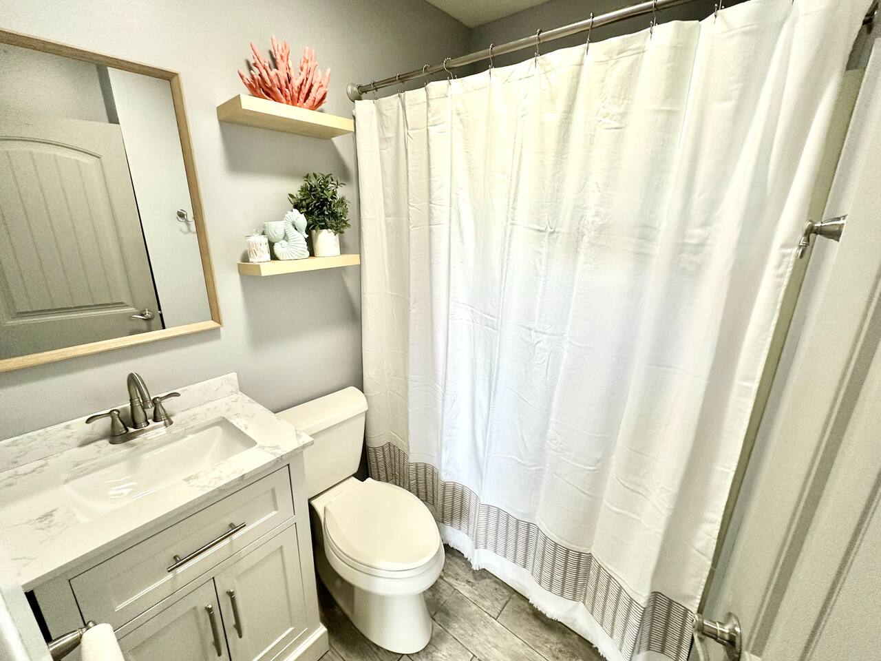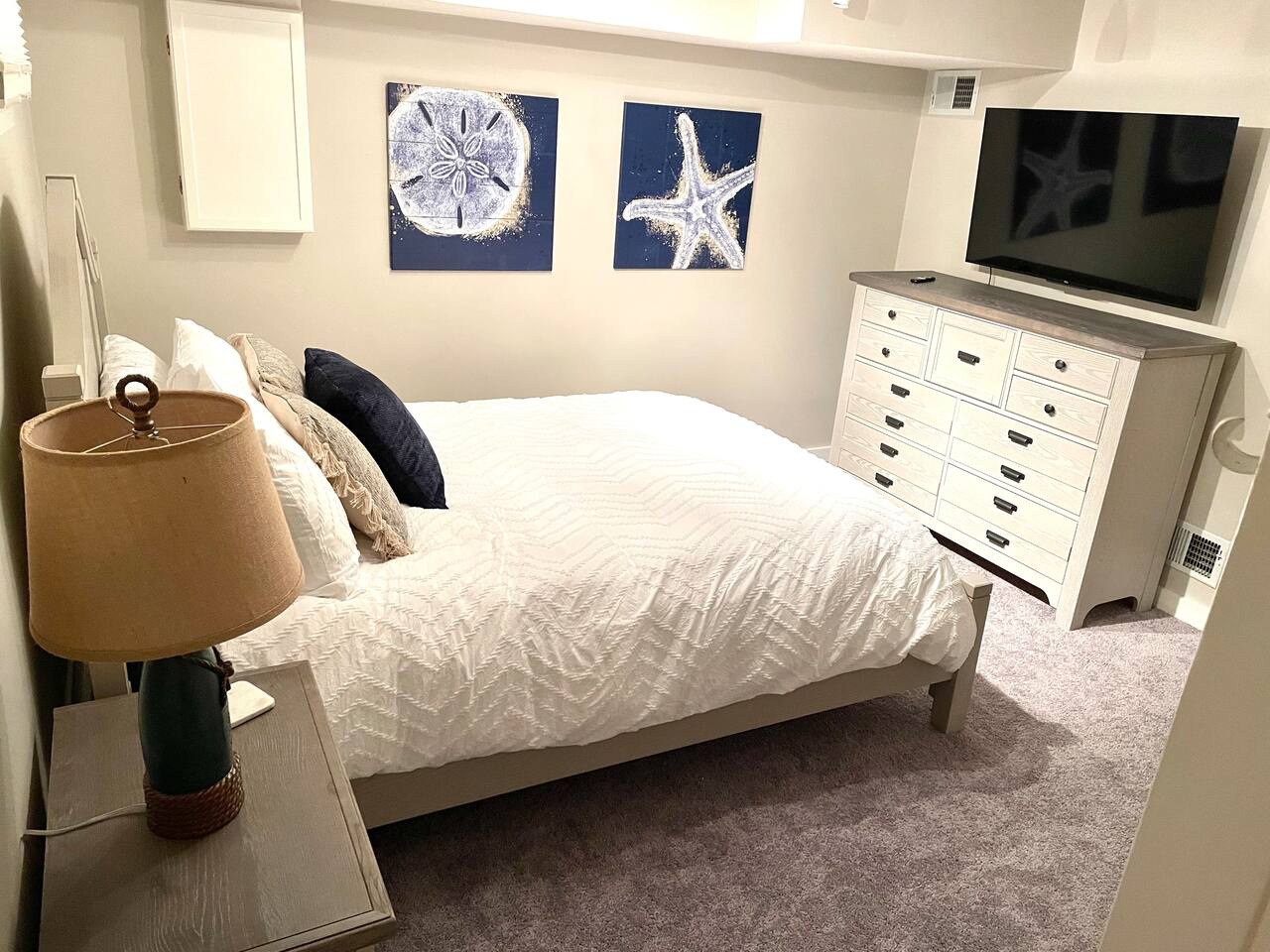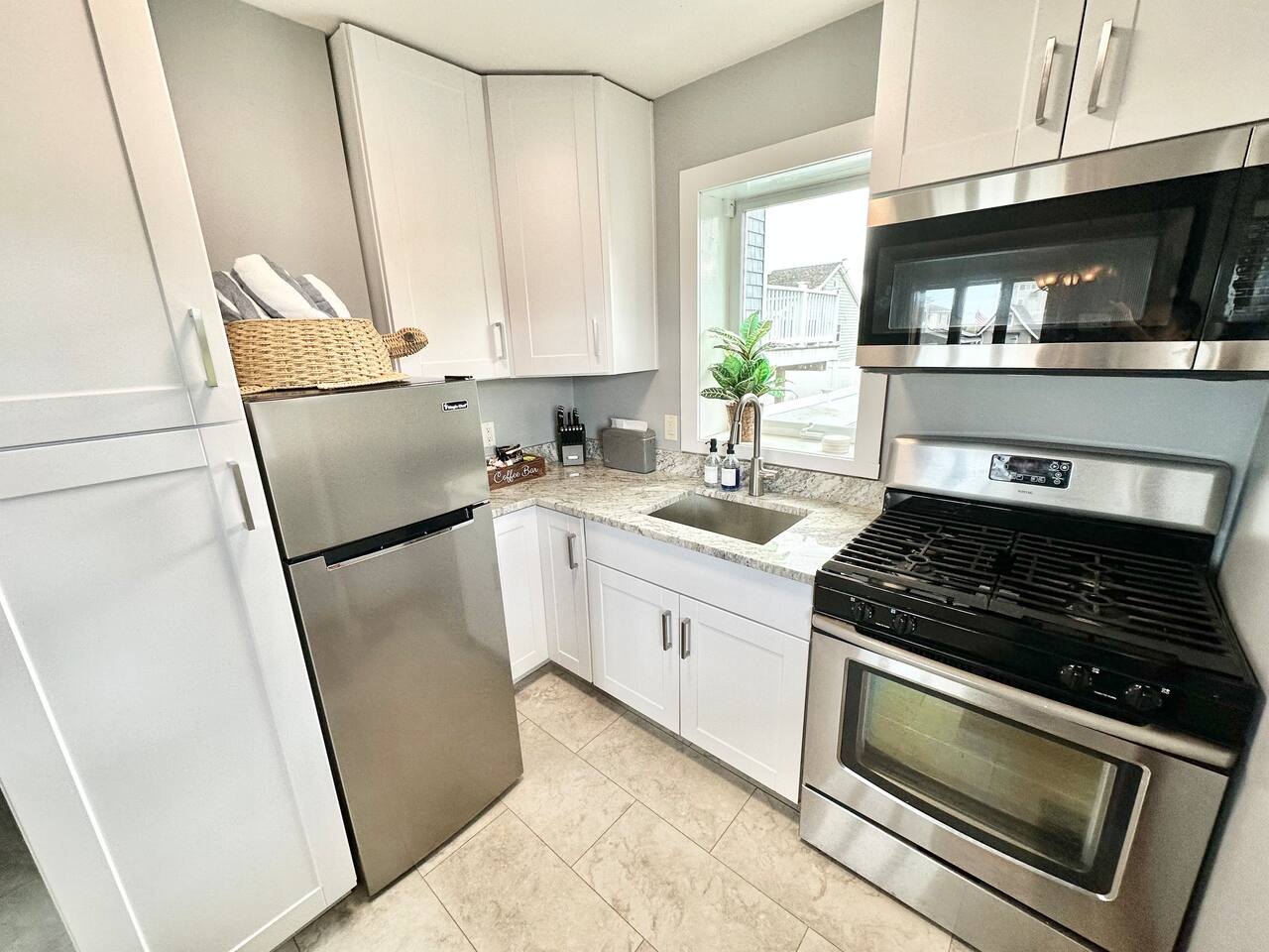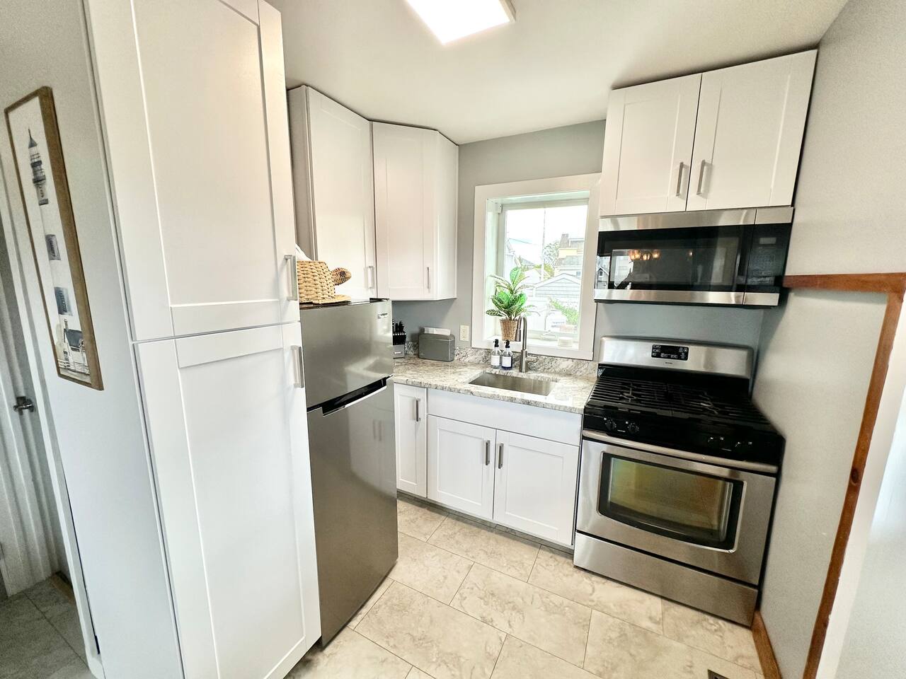 This condo complex includes two townhouse units that are attached. You will be renting this entire building! Each unit has a separate entrance, driveway, yard, and porches but you can easily walk from one side to the other. The outdoor space here is truly special, with multiple decks and patios where you can enjoy meals, sunbathe, or unwind with family and friends. We’ve also provided plenty of beach gear including bikes, sand toys, and chairs, so you’re all set for fun in the sun. And when it’s time for a cookout, you’ll find BBQ grills ready for your use! With parking for up to 7 cars (across 2 driveways), everyone can easily get to the property, and the beach is just a short walk away (about 100 steps). Whether you’re here to relax, explore, or enjoy the beautiful beach, this duplex offers everything you need for an unforgettable stay. UNIT A FEATURES: This spacious, fully updated 3-bedroom townhouse sleeps 8 and offers plenty of room for everyone to relax. The open layout, modern furnishings, and sun-filled rooms make it a perfect place to unwind after a day at the beach. Level 1: Living room and full bath Level 1.5: Kitchen Level 2: 2 bedrooms plus office area Lower Level: Bedroom and laundry Bedroom 1: Queen bed, attached bath, and step-down to office area with twin bed plus trundle and sliders to upper deck Bedroom 2: Queen bed with sliders to upper deck Bedroom 3 (lower level): Queen bed, attached to laundry room Outdoor - Driveway fits 5 cars - Large patio with full dining set in covered space and Adirondack chairs next to the shed - Large deck with another full dining set - Propane grill - Shed with beach gear and supplies - Upper deck with Adirondack chairs Other - Central heat and central air - Garage only fits very small car UNIT B FEATURES: **** Note: Photos for Unit 2 will be available May 15, 2025. ****** A cozy 2-bedroom townhouse that sleeps 4, featuring a new kitchen and all the comforts you need for a restful stay. It’s the perfect retreat for smaller families or a more intimate space to relax. Level 1: Dining room, kitchen, and full bath Level 2: Two bedrooms (queen and full bed), each with sliders to upper deck Lower level: living room and laundry room Other - Central Heat - Portable AC's OUTDOOR - Driveway fits 2 cars - Small patio with dinette set - Front Porch with swing - Upper deck with seating - Shed with beach gear and supplies BEDROOM SUMMARY BR1 - Queen Bed + twin daybed with twin trundle BR2 - Queen Bed BR3 - Queen Bed BR4 - Queen Bed BR5 - Full Bed