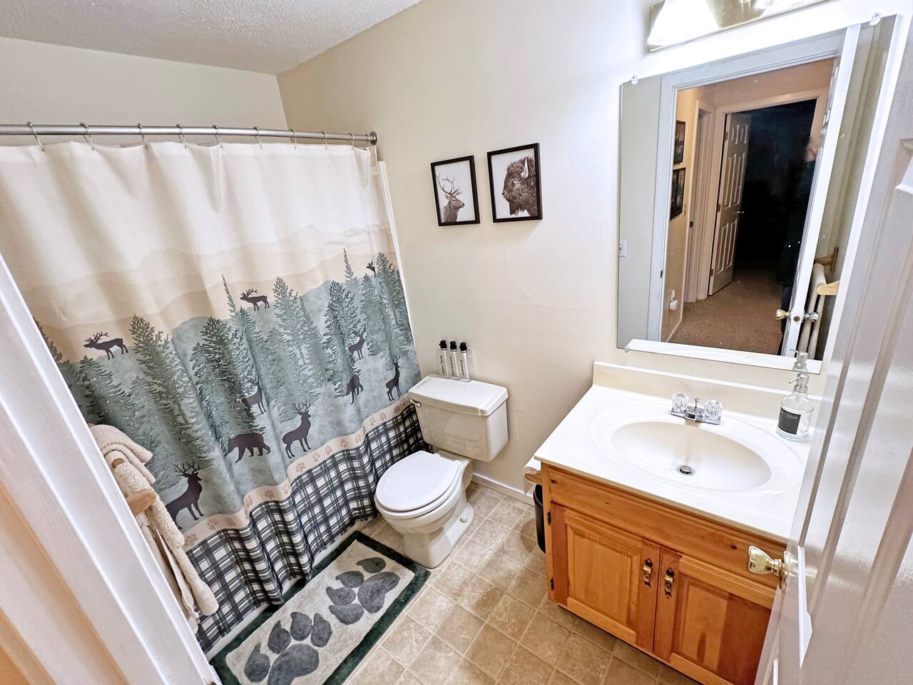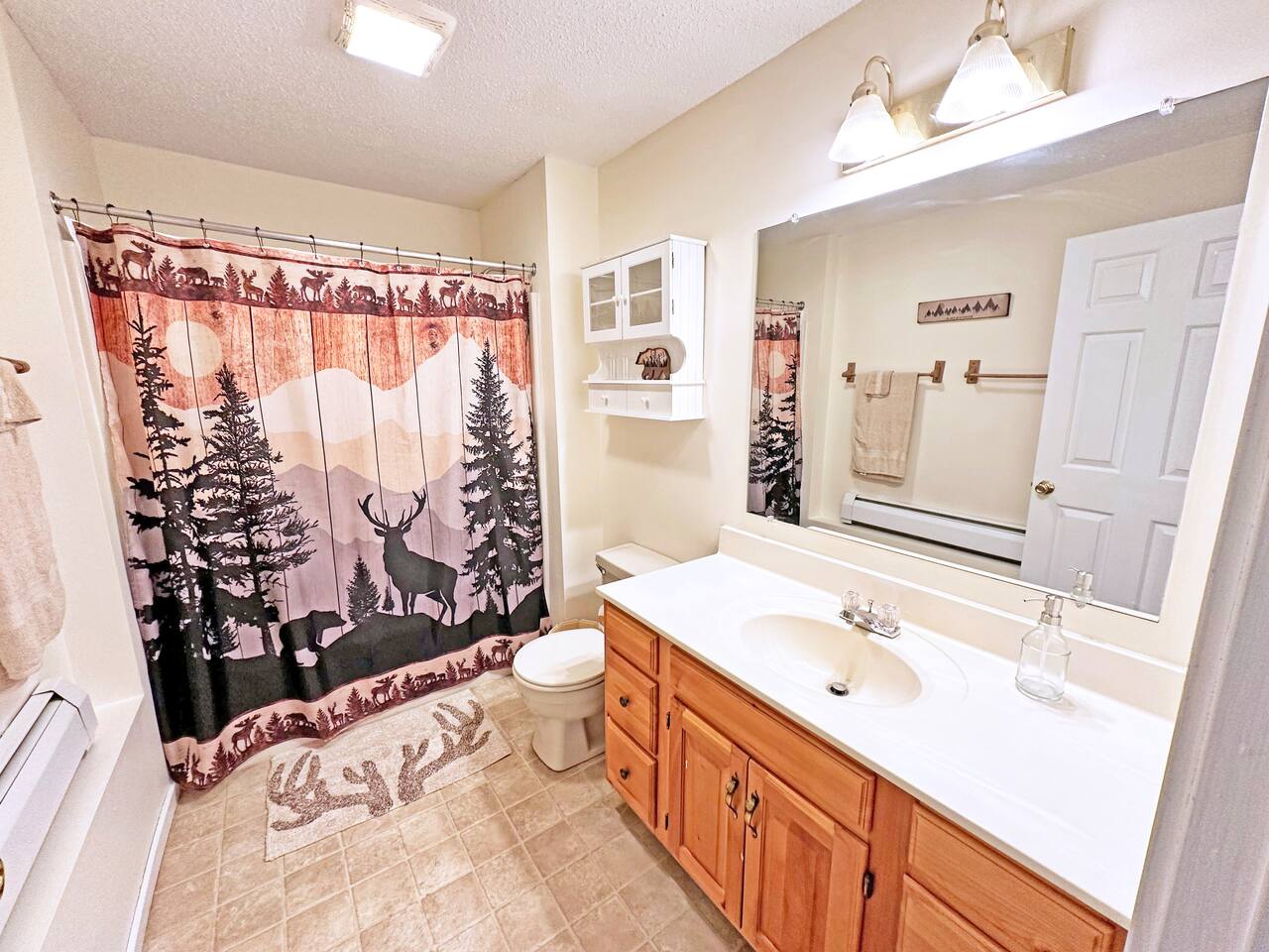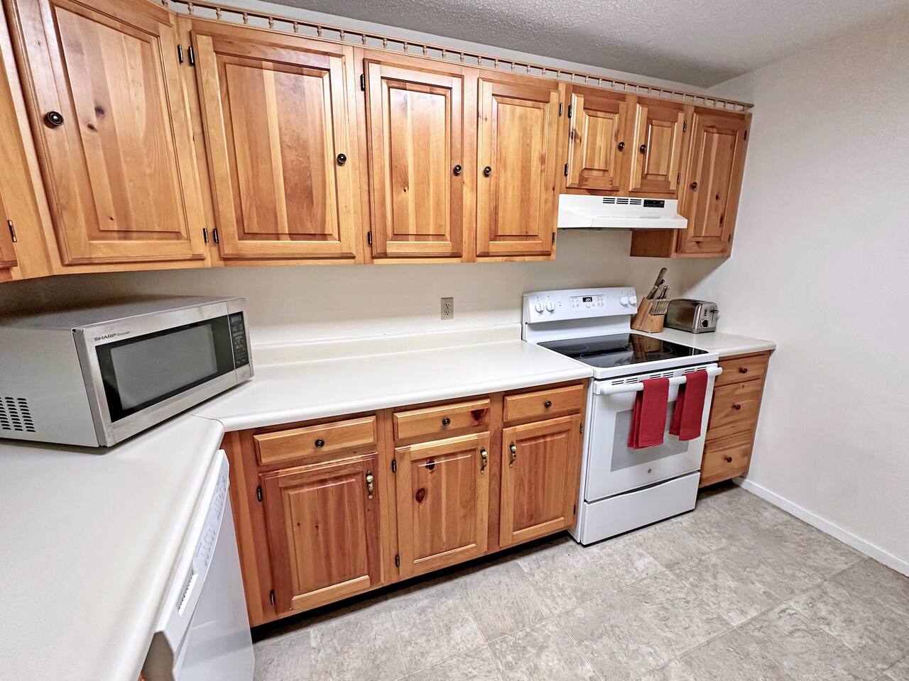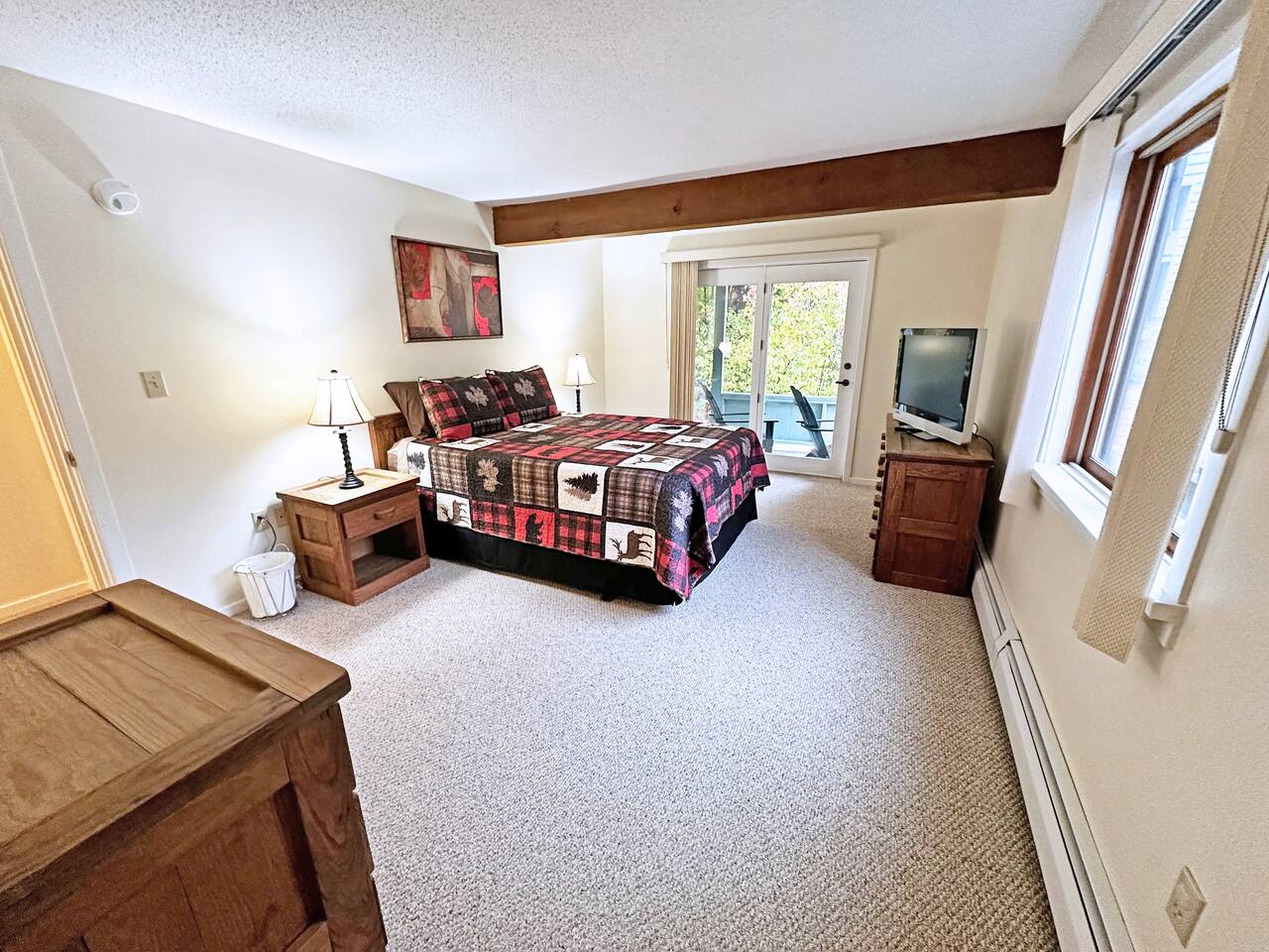 MAIN LIVING AREA This single-level garden-style condo features a combination living room and dining room space with multiple sofas, a full dining table and a pellet stove. The attached kitchen is equipped with all the basic necessities for cooking a meal at home. At the far end of the living room is a covered porch, great for enjoying your morning coffee. - Plenty of seating - TV - Pellet stove - Fully applianced kitchen - Drip coffeemaker MASTER BEDROOM The spacious master bedroom features a full bath, walk-in closet and sliders to the covered porch. There's plenty of room for a pack 'n play for your little one, which we also provide. - Queen bed - Night stands - Side table lamps - TV - Dressers - Walk-in Closet - Attached full bath SECOND BEDROOM The second bedroom is a great space for the kids. It includes two full mattresses and a slide-out twin trundle underneath the bottom bunk. - Full-over-full bunk bed - Twin trundle - Dresser - Closet - TV - Full bathroom off hallway OTHER IMPORTANT DETAILS - LAUNDRY: Enjoy the convenience of in-unit laundry! A stackable laundry machine is provided free-of-charge. - PARKING: Parking is available for 2 cars and on a first-come- first-serve basis. The lot is directly outside of the building. BABY GEAR - Pack 'n Play - High-chair - Baby bath CONSUMABLE SUPPLIES PROVIDED - Paper Towels - Toilet Paper - Shampoo - Conditioner - Body Wash - Dish soap - Dish Sponge - Trash Bags - Dishwasher tablets - Laundry pods - Starter drip coffee packs - Sugar - Non-dairy creamer COMMUNITY AMENITIES Please refer to our welcome book for a map of the community. A pass is provided inside of the unit. Please note that a fee is charged for lost passes. - Fishing pond - Picnic area - Community fire pit - Ball field - Hot tub - Game room with arcade games, table tennis, and pool table - Indoor, heated pool - Fitness room - Tennis courts NEARBY ATTRACTIONS - Attitash Mountain (3 minutes) - Storyland (6 mins) - Diana's Baths (8 mins) - Jackson Falls (10 mins) - Black Mountain Ski Area (13 mins) - North Conway Village (13 mins) - North Conway Outlets (19 mins) - Cranmore Mountain (15 mins) And much, much more!