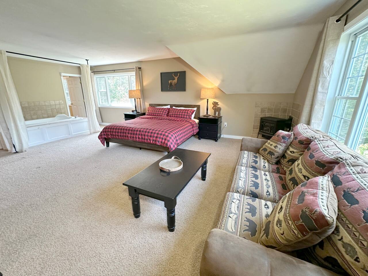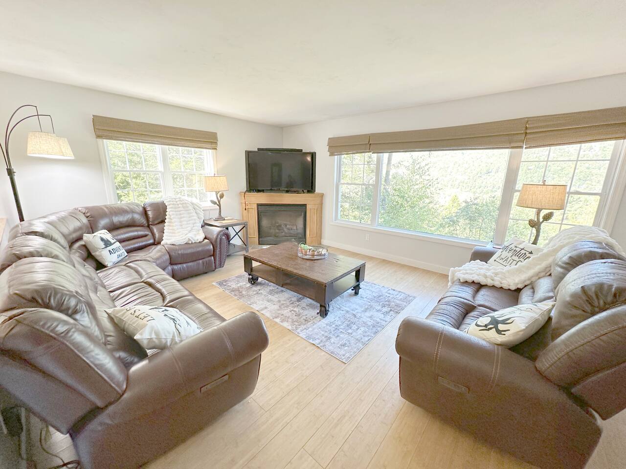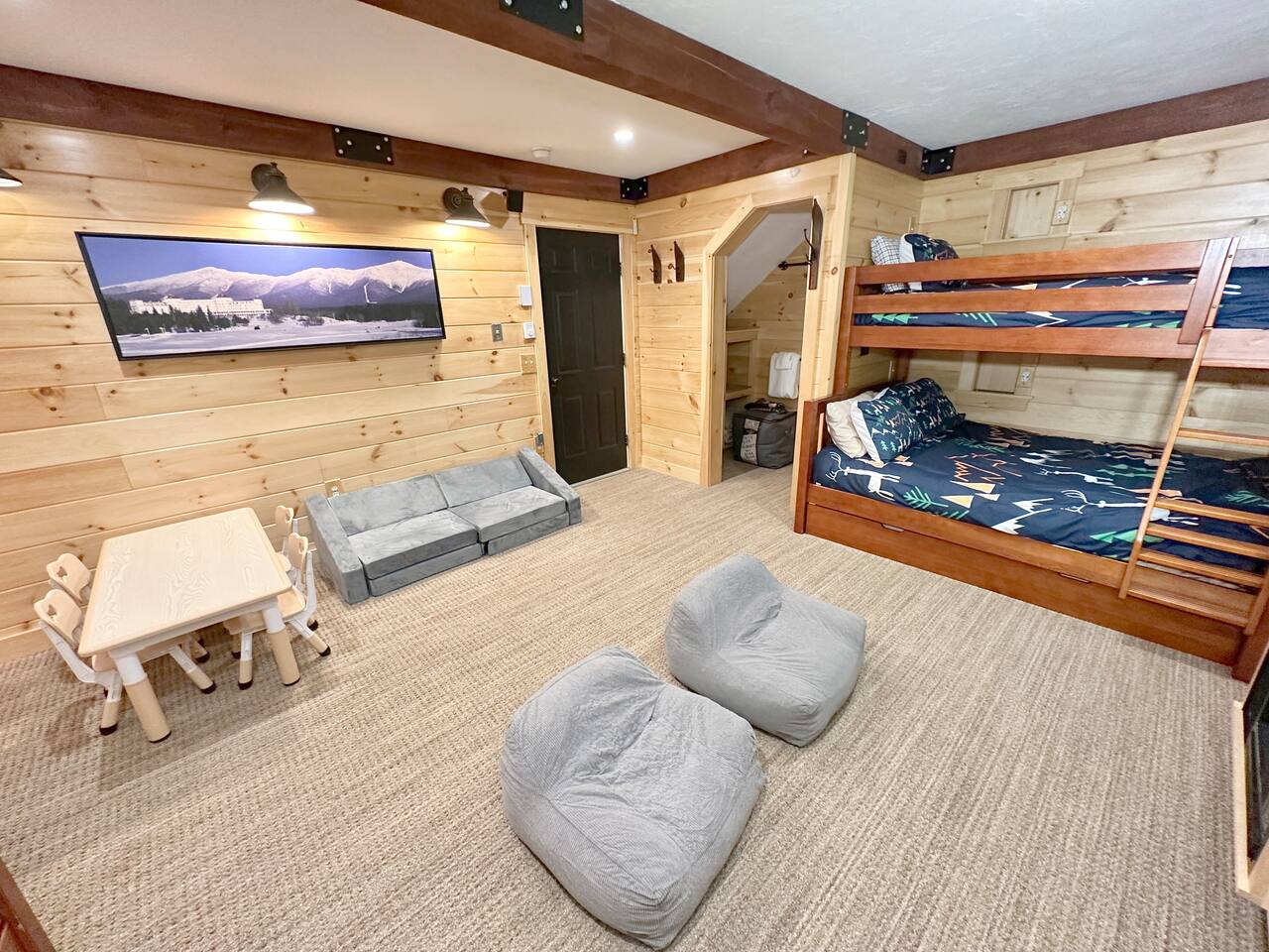 This spacious home is great for extended families and is full of amenities for an amazing stay! HIGHLIGHTS - Views of Stanton Mountain - Bedrooms with fireplaces, sitting areas, TV's and AC - Almost all bedrooms have private bathrooms - Two driveways with plenty of parking - Three different gaming areas - Gas fireplaces throughout - Wall AC units in each room - Outdoor fire pit with Adirondack chairs - Walk to Attitash ski lifts - Access to Attitash Sports Club amenities - Extensive outdoor seating - 6 person hot tub (starting early October) BEDROOMS BR1 (1st flr) - King Bed with private bath, fireplace with sitting area, TV, wall AC, sliders to deck with mountain views BR2 (1st flr) - 2 twin over full bunk beds plus 2 twin trundles, kids' play area with fort-building sofa, TV, Xbox, and board games BR3 (2nd flr) - King bed, twin bed with trundle, full crib, private bath, soaking tub, fireplace, and sofa BR4 (2nd flr) - King bed, private bath, fireplace and sitting area BR5 (lower level) - King bed, private bath, sitting area, sliders to lower deck with mountain views LIVING LEVELS 1st Flr - BR1 with bath and BR2 - Kitchen with island and bar stools - Large dining table and chairs - Living room with fireplace and mountain views - Mudroom - Decks 2nd Flr - BR3 with bath & BR4 with bath - Game room with pool table (separate stairs from bedrooms) Lower Level - BR5 with bath - Extra full bath - Kitchenette - Game room with fireplace, sitting area, arcade games, foosball, and air hockey - Exit to lower driveway - Covered deck - Hot tub (starting early October) OUTDOOR - Two driveways for parking - Large deck with multiple dining tables and chairs - Covered seating area with sofa - Covered gas grill area - Fire pit with Adirondack chairs xSTR DETAILS & SUPPLIES We go the xSTR mile to make your stay easy and memorable. We provide: - Bedding: Bed Linens, bath towels, and hot tub/pool towels - Toiletries: shampoo, conditioner, body wash, and cotton swabs in each bathroom - Kitchen supplies: pots & pans, dinnerware, bakeware, plasticware for children, toaster, blender, waffle maker, dual coffee maker (k-cup & drip), glassware, food storage containers, wine glasses, and more! - Paper goods: paper towels, toilet paper, dishwasher tablets, laundry pods, and trash bags - Coffee/Tea: Starter supplies for coffee and tea. SPORTS CLUB AMENITIES All renters will have access to Attitash Sports Club amenities including indoor/outdoor pools, indoor/outdoor hot tubs, tennis courts, playgrounds, private walking trails to small beaches along the Saco, game rooms, fitness rooms, and more. Access is free for our guests. A keycard is provided at the property. Lost keycards are subject to a $25 replacement fee. Please review the welcome book for additional information. - Indoor & Outdoor Pools - Indoor & Outdoor Hot Tubs - Saunas - Tennis Courts (clay and hard surface) - Walking Trails - Beaches along the Saco River - Fitness Rooms - Game Rooms