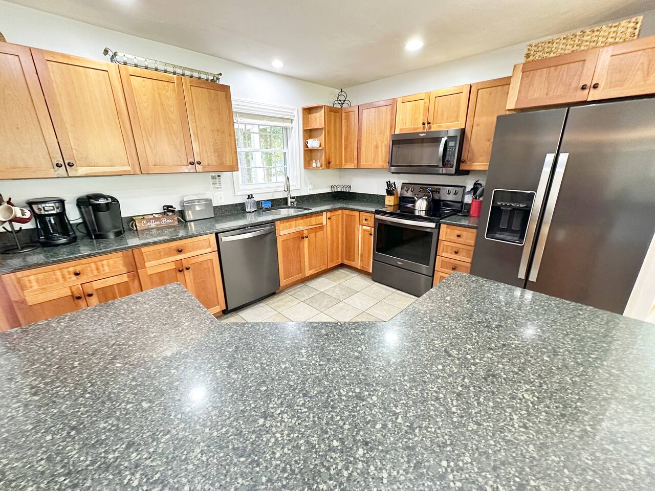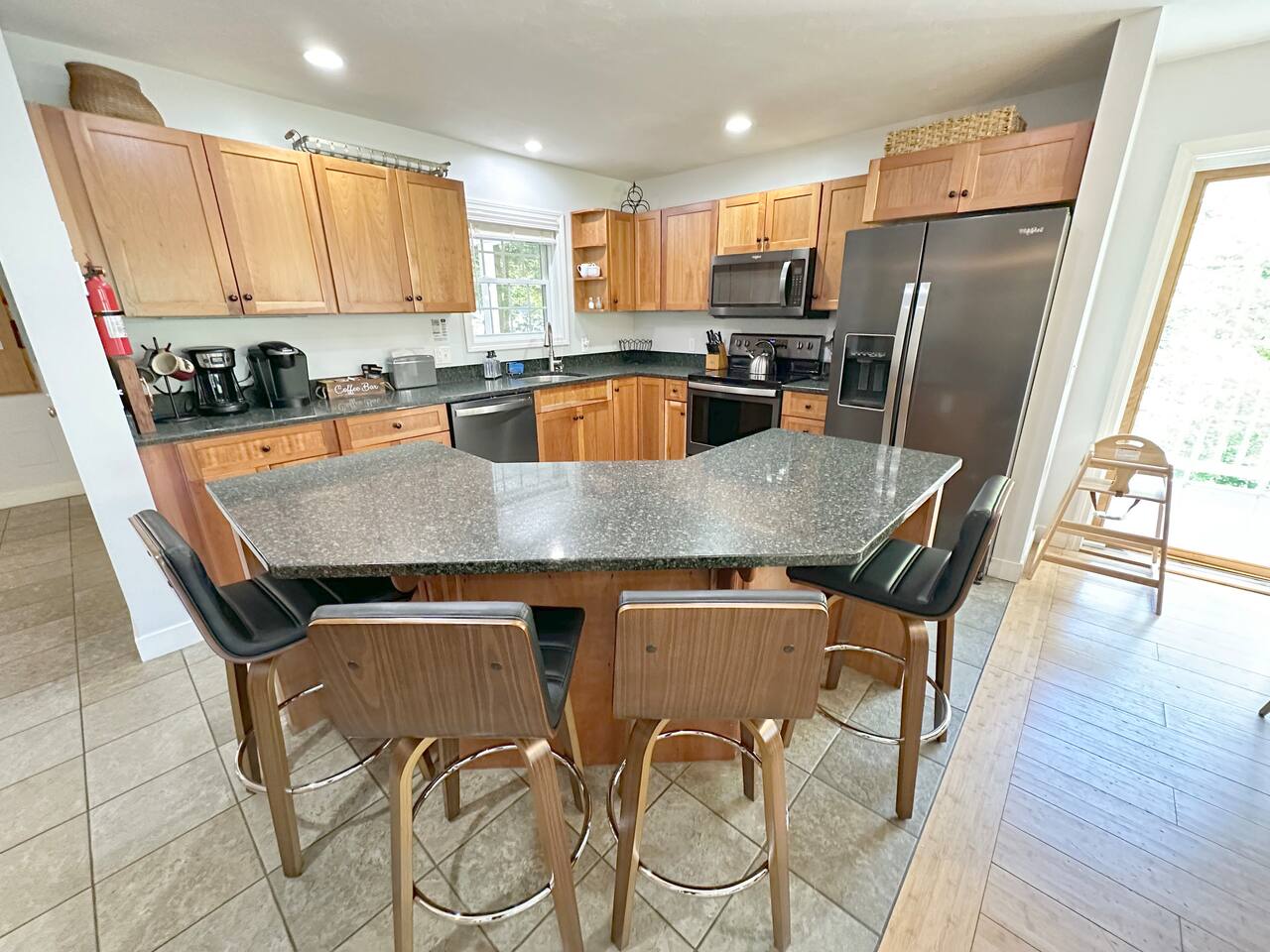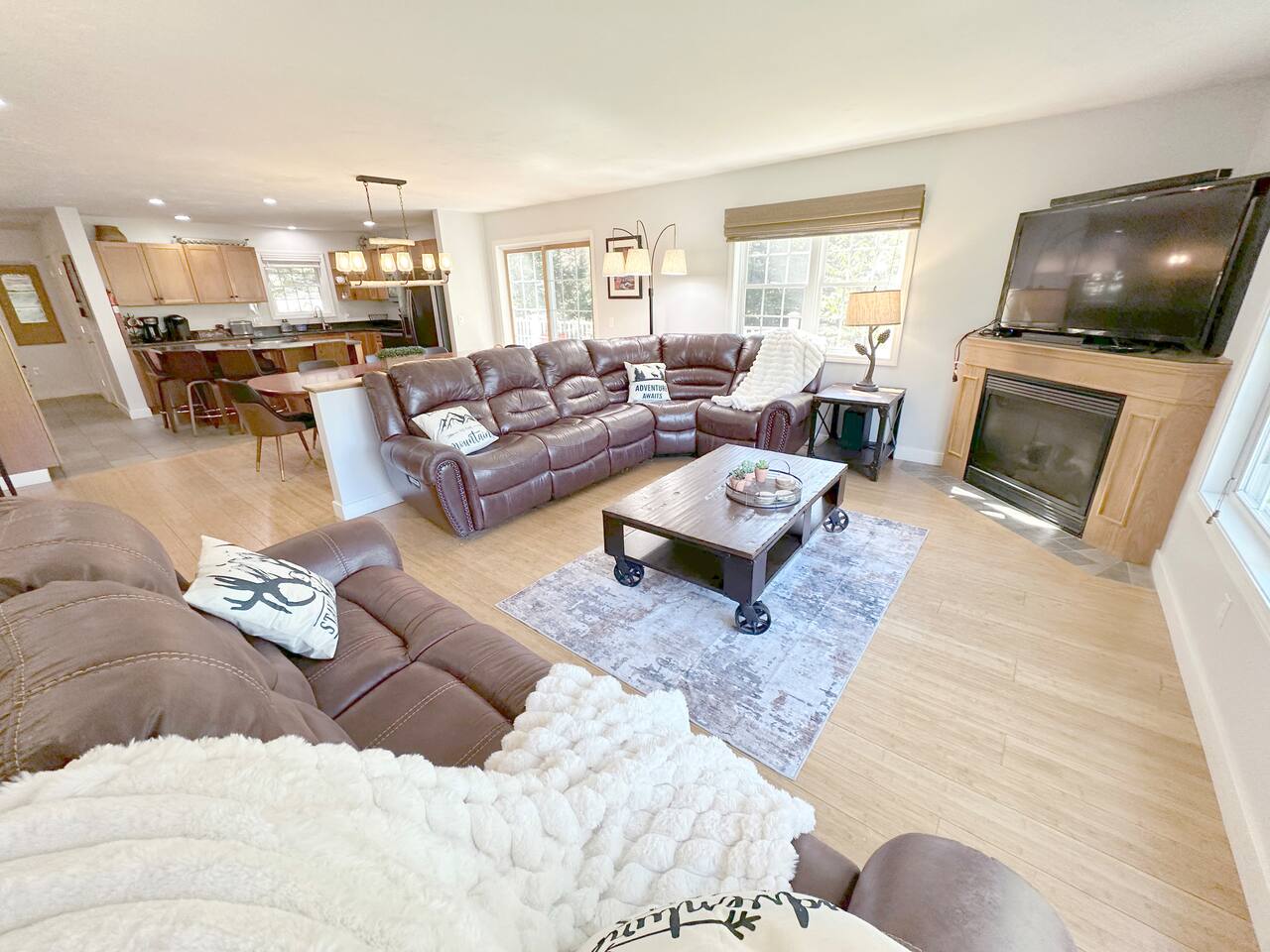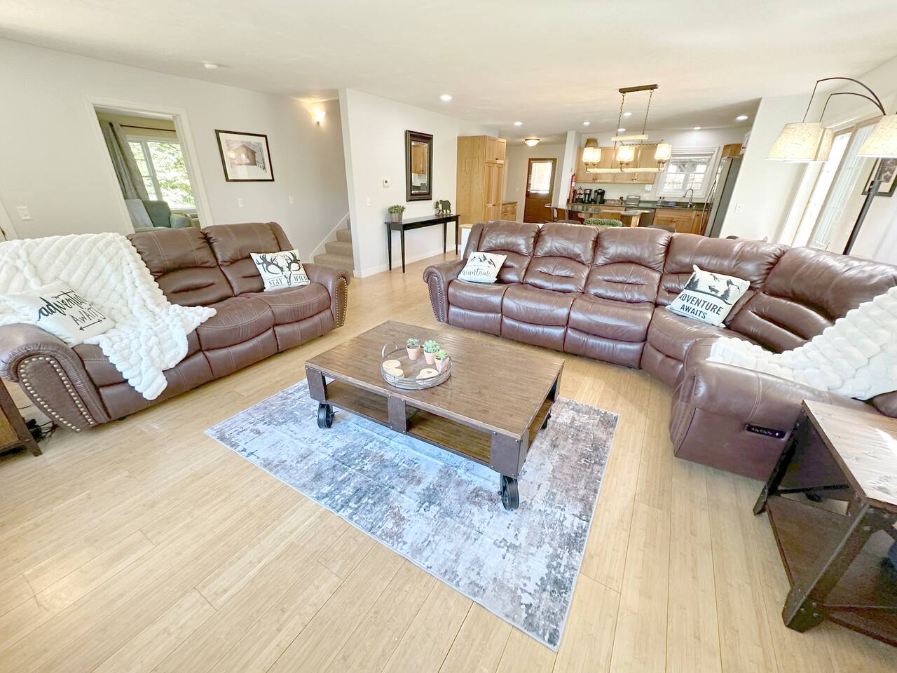 This spacious home is great for extended families and is full of amenities for an amazing stay! HIGHLIGHTS - Views of Stanton Mountain - Bedrooms with fireplaces, sitting areas, TV's and AC - Almost all bedrooms have private bathrooms - Two driveways with plenty of parking - Three different gaming areas - Gas fireplaces throughout - Wall AC units in each room - Outdoor fire pit with Adirondack chairs - Walk to Attitash ski lifts - Access to Attitash Sports Club amenities - Extensive outdoor seating - 6 person hot tub (starting early October) BEDROOMS BR1 (1st flr) - King Bed with private bath, fireplace with sitting area, TV, wall AC, sliders to deck with mountain views BR2 (1st flr) - 2 twin over full bunk beds plus 2 twin trundles, kids' play area with fort-building sofa, TV, Xbox, and board games BR3 (2nd flr) - King bed, twin bed with trundle, full crib, private bath, soaking tub, fireplace, and sofa BR4 (2nd flr) - King bed, private bath, fireplace and sitting area BR5 (lower level) - King bed, private bath, sitting area, sliders to lower deck with mountain views LIVING LEVELS 1st Flr - BR1 with bath and BR2 - Kitchen with island and bar stools - Large dining table and chairs - Living room with fireplace and mountain views - Mudroom - Decks 2nd Flr - BR3 with bath & BR4 with bath - Game room with pool table (separate stairs from bedrooms) Lower Level - BR5 with bath - Extra full bath - Kitchenette - Game room with fireplace, sitting area, arcade games, foosball, and air hockey - Exit to lower driveway - Covered deck - Hot tub (starting early October) OUTDOOR - Two driveways for parking - Large deck with multiple dining tables and chairs - Covered seating area with sofa - Covered gas grill area - Fire pit with Adirondack chairs xSTR DETAILS & SUPPLIES We go the xSTR mile to make your stay easy and memorable. We provide: - Bedding: Bed Linens, bath towels, and hot tub/pool towels - Toiletries: shampoo, conditioner, body wash, and cotton swabs in each bathroom - Kitchen supplies: pots & pans, dinnerware, bakeware, plasticware for children, toaster, blender, waffle maker, dual coffee maker (k-cup & drip), glassware, food storage containers, wine glasses, and more! - Paper goods: paper towels, toilet paper, dishwasher tablets, laundry pods, and trash bags - Coffee/Tea: Starter supplies for coffee and tea. SPORTS CLUB AMENITIES All renters will have access to Attitash Sports Club amenities including indoor/outdoor pools, indoor/outdoor hot tubs, tennis courts, playgrounds, private walking trails to small beaches along the Saco, game rooms, fitness rooms, and more. Access is free for our guests. A keycard is provided at the property. Lost keycards are subject to a $25 replacement fee. Please review the welcome book for additional information. - Indoor & Outdoor Pools - Indoor & Outdoor Hot Tubs - Saunas - Tennis Courts (clay and hard surface) - Walking Trails - Beaches along the Saco River - Fitness Rooms - Game Rooms