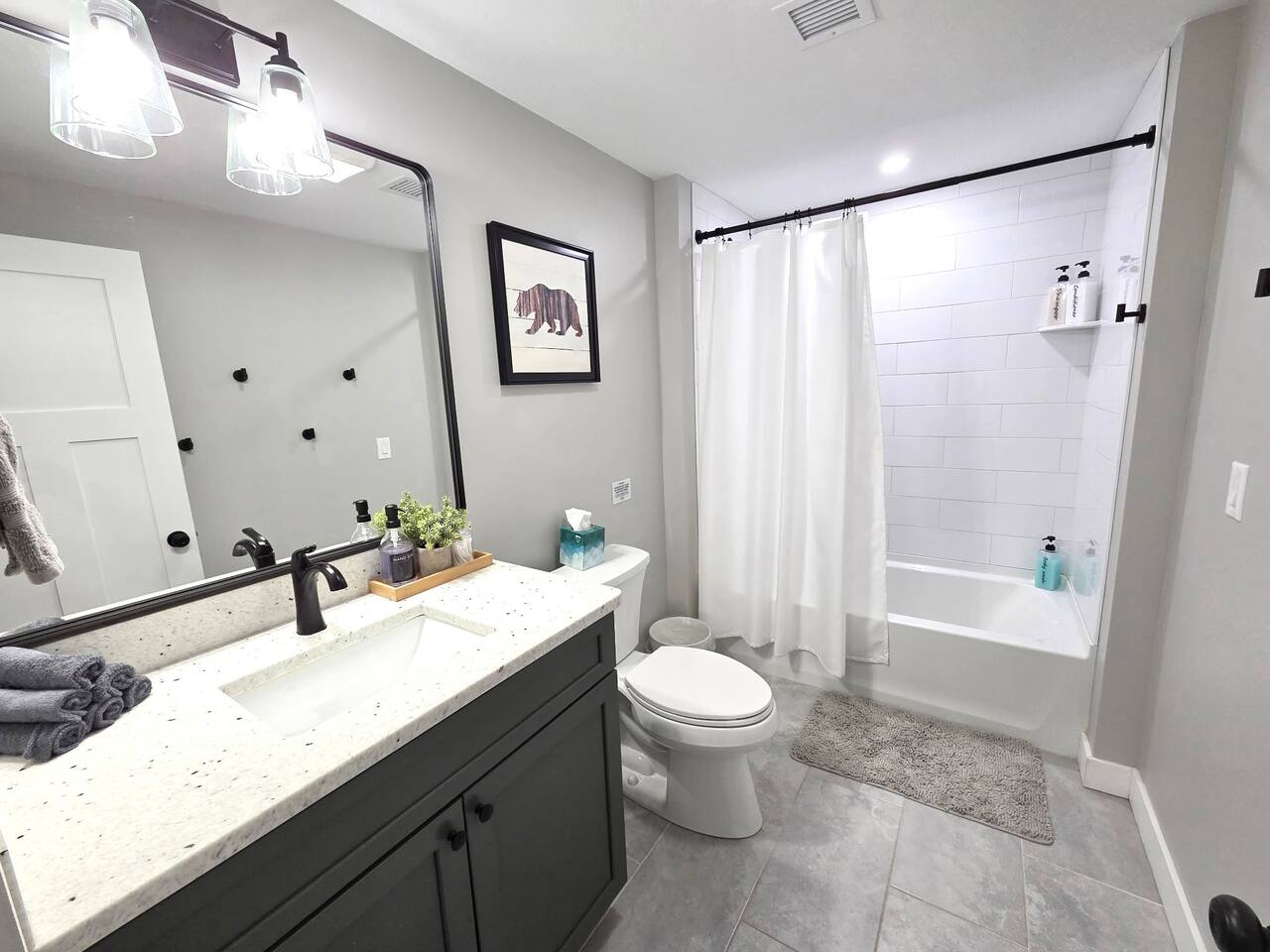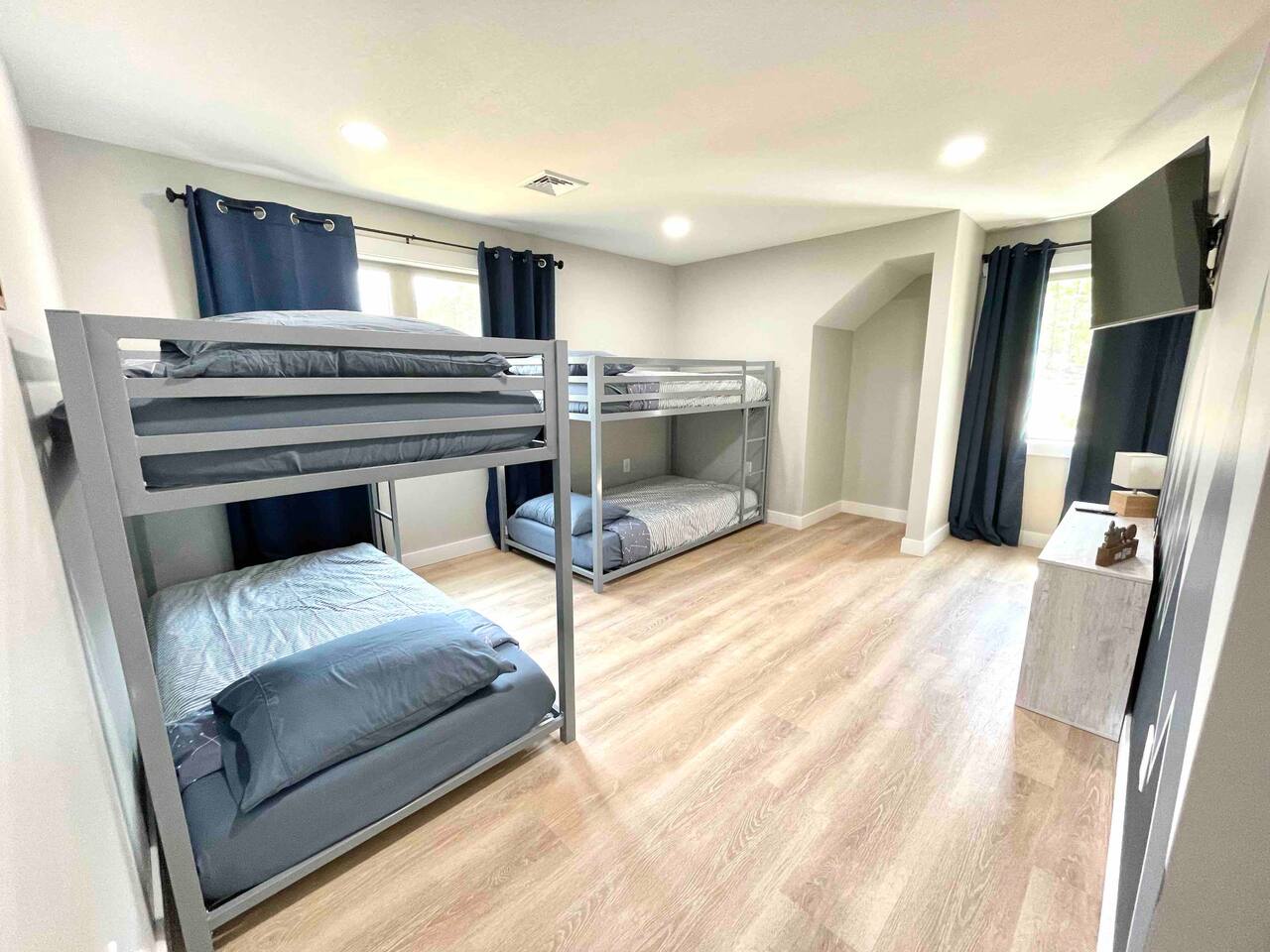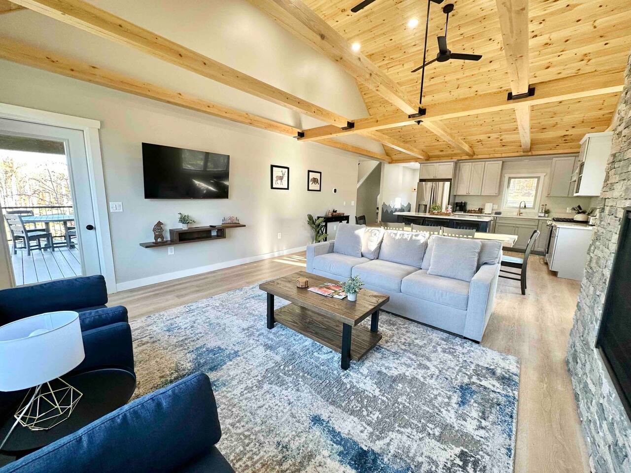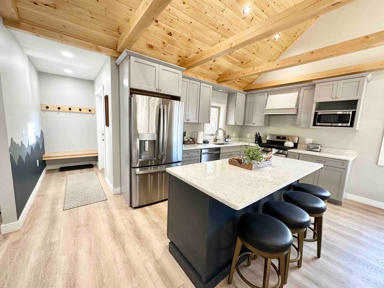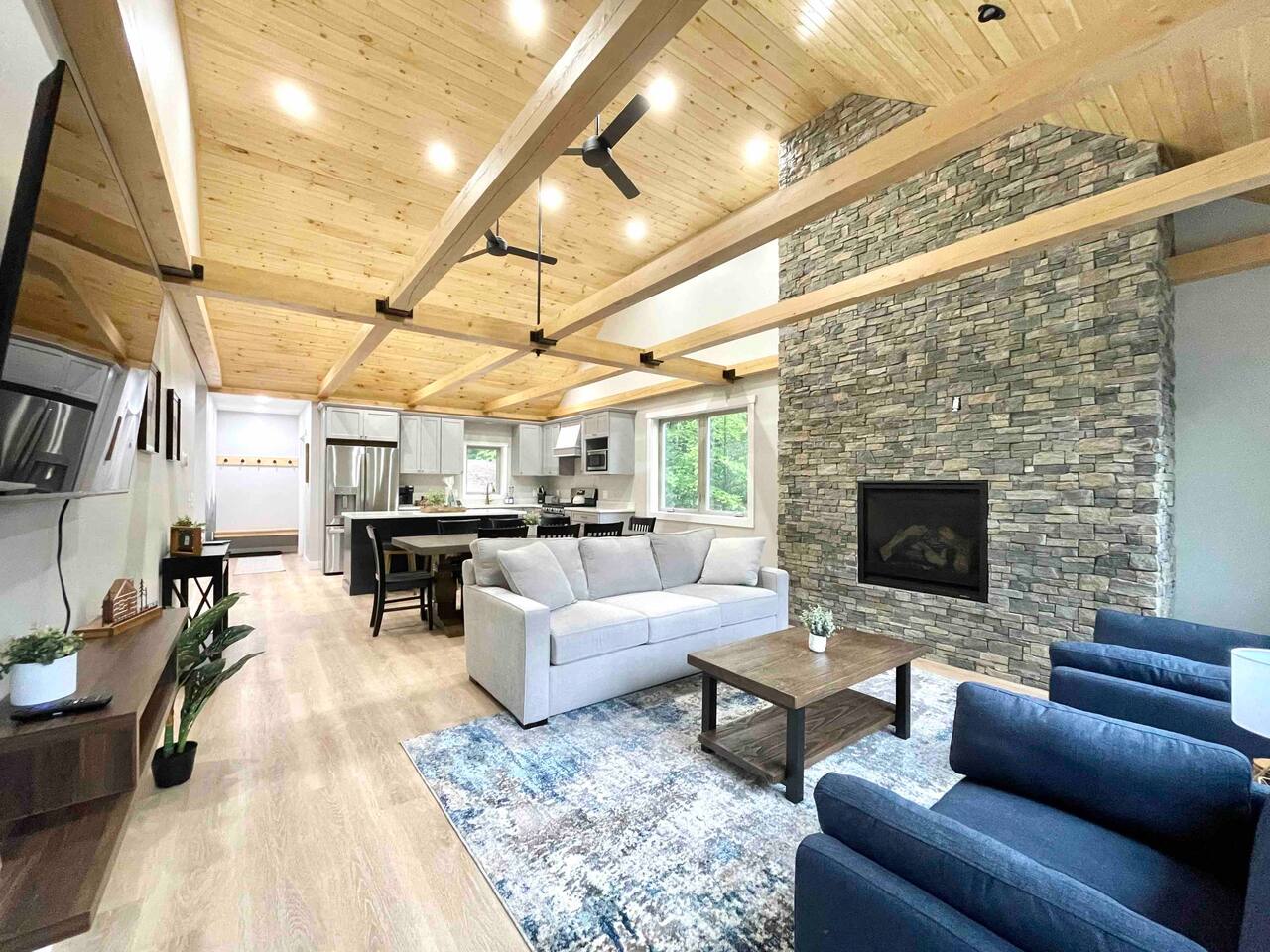 Step into this newly constructed home and find yourself transported into vacation mode instantly. It's flooded with natural light and designed with a touch of mountain charm. High ceilings, rustic details, and minimalist finishes give you the mental space you need to relax and restore. A large living room window frames a stunning mountain view that changes as the sun moves across the sky. This four bedroom White Mountain Retreat is ideal for large families or groups —providing places to hang together and unwind apart. The location is a paradise for adventurers: It is right next to Attitash and steps away from some of the area’s most peaceful and scenic hiking trails. Renters have access to the Attitash Sports Club, which includes a fitness center, indoor/outdoor pools and hot tubs, tennis courts, playgrounds, beach trails, and more! Plus, Storyland and North Conway Village are right up the street, making this luxury property a welcome home base for a truly memorable getaway. Featured Highlights * Access to Attitash Sports Club * Gas Fireplace * Hot Tub * Covered Porch with Seating * Fire Pit * Mountain Views * Playroom/Gameroom * Short Distance to Multiple Ski Resorts * 5 minutes to Storyland * Next door to Attitash MAIN FLOOR The first floor features a captivating great room, where the kitchen, dining area, and living room are united under the striking vaulted ceilings. This expansive space is ideal for groups to gather for shared meals and cherished moments. The dining area comfortably accommodates 8 at the table, with an additional 4 seats available on the island. In the living room, a couch centers around the stone fireplace that stretches to the ceiling, inviting guests to curl up for cozy afternoons or evenings after a day spent in the outdoors. It can also serve as the focal point for group gatherings and game nights. BEDROOMS 1st Floor Primary Bedroom | 1 king bed with en suite bath, walk-in closet, and walk-out to covered porch 2nd Floor Bedroom 1 | 1 queen bed, shared bathroom 2nd Floor Bedroom 2 | 2 sets of bunkbeds with 4 twin mattresses total, shared bathroom Lower Level Bedroom | 2 full beds and en suite bath with shower LOWER LEVEL On the lower level, discover a dedicated kids’ playroom, which is a fun hideaway for kids. Additionally, a spacious family room awaits, complete with comfortable seating, a TV, air hockey table, an assortment of board games, and convenient access to the hot tub. This area is designed for both entertainment and relaxation, making it a great spot for family and friends to have fun together. PARKING & STORAGE – Parking for 2 cars in the garage and 3 cars in the driveway – Ski storage rack in garage AMENITIES Outdoor - Access to Attitash Sports Club - Large yard with mountain views - Hot tub on covered patio - Fire pit w/ Adirondack chairs - Picnic table - Covered porch w/ furniture - Gas grill - Corn hole set Indoor - Smart TVs in every bedroom - Variety of bed sizes including 1 king bed, 1 queen bed, 2 full beds and 4 twins (bunks) - Bunk bed room - Full kitchen - Dining area - Gas fireplace - Wireless internet - Remote workspace with door - Washer and dryer - Playroom/Game Room: Fort building cushions, air hockey, foosball, board games and more! xSTR DETAILS & SUPPLIES We go the xSTR mile to make your stay easy and memorable. We provide: - Bedding: Bed Linens, bath towels, and hot tub/pool towels - Toiletries: shampoo, conditioner, body wash, and cotton swabs in each bathroom - Kitchen supplies: pots & pans, dinnerware, bakeware, plasticware for children, toaster, blender, dual coffee maker (K-cup and drip), glassware, food storage containers, wine glasses, and more! - Paper goods: paper towels, toilet paper, dishwasher tablets, laundry pods, and trash bags - Coffee/Tea: A few starter supplies for coffee and tea. ATTITASH MOUNTAIN We're just a mile from Attitash Mountain. There's free parking at the base of the mountain and across the street, so you can park and walk to the slopes. If parking across the street, be sure to use the underground walkway to safely cross the road. There's overflow parking further down the street with a shuttle every 5-10 minutes. SPORTS CLUB AMENITIES All renters will have access to Attitash Sports Club amenities including indoor/outdoor pools, indoor/outdoor hot tubs, tennis courts, playgrounds, private walking trails to small beaches along the Saco, game rooms, fitness rooms, and more. Access is free for our guests. A keycard is provided at the property. Lost keycards are subject to a $25 replacement fee. Please review the welcome book for additional information. - Indoor & Outdoor Pools - Indoor & Outdoor Hot Tubs - Saunas - Tennis Courts (clay and hard surface) - Walking Trails - Beaches along the Saco River - Fitness Rooms - Game Rooms