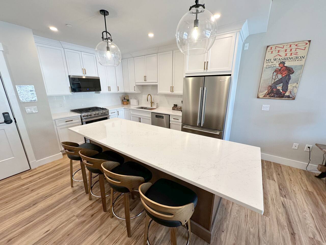 Enjoy true slopeside living at this clean, modern townhouse located right on Cranmore Mountain. Thoughtfully updated and designed for comfort, the home features a full, contemporary kitchen with a large island—perfect for gathering after a day on the slopes. With three bedrooms and three full baths, there’s plenty of space for families or groups to spread out and relax.