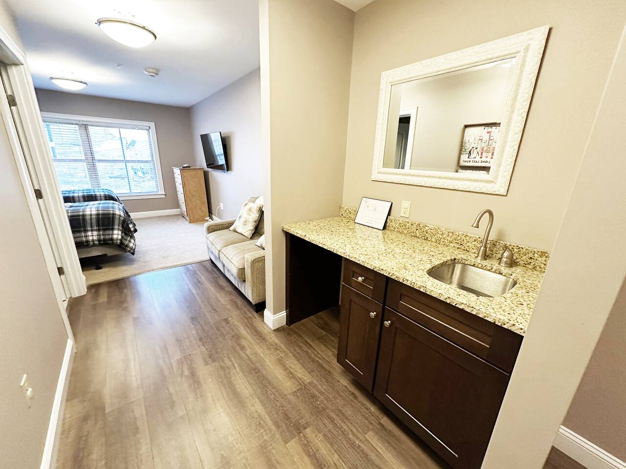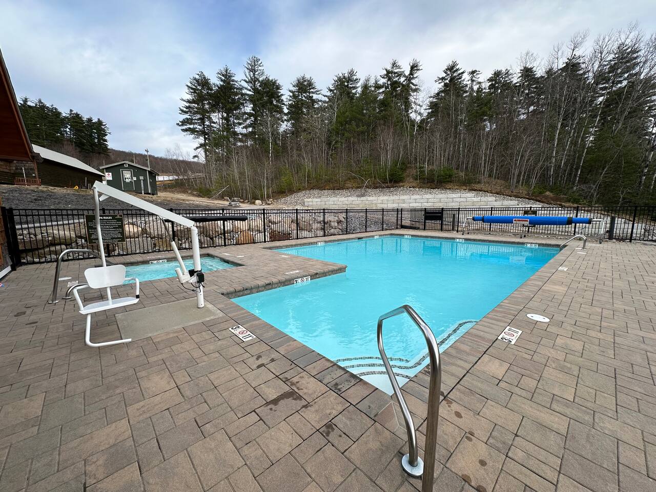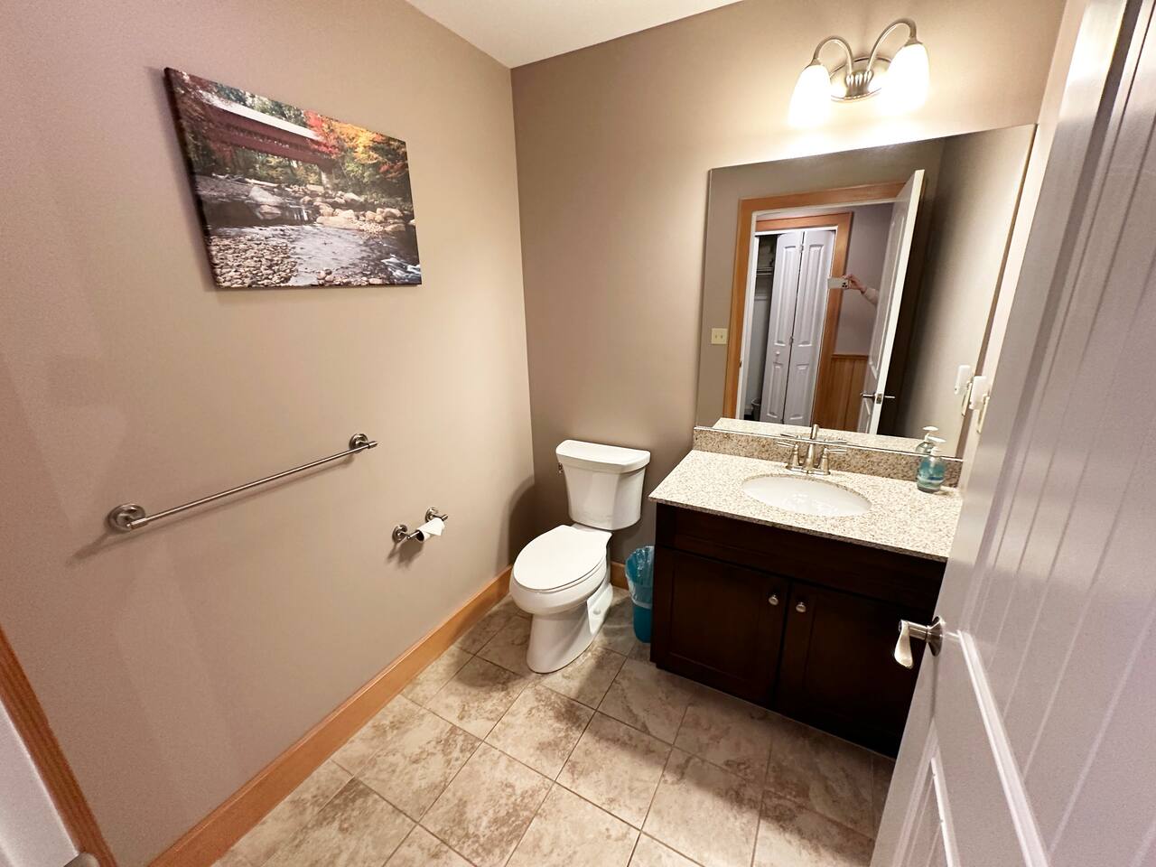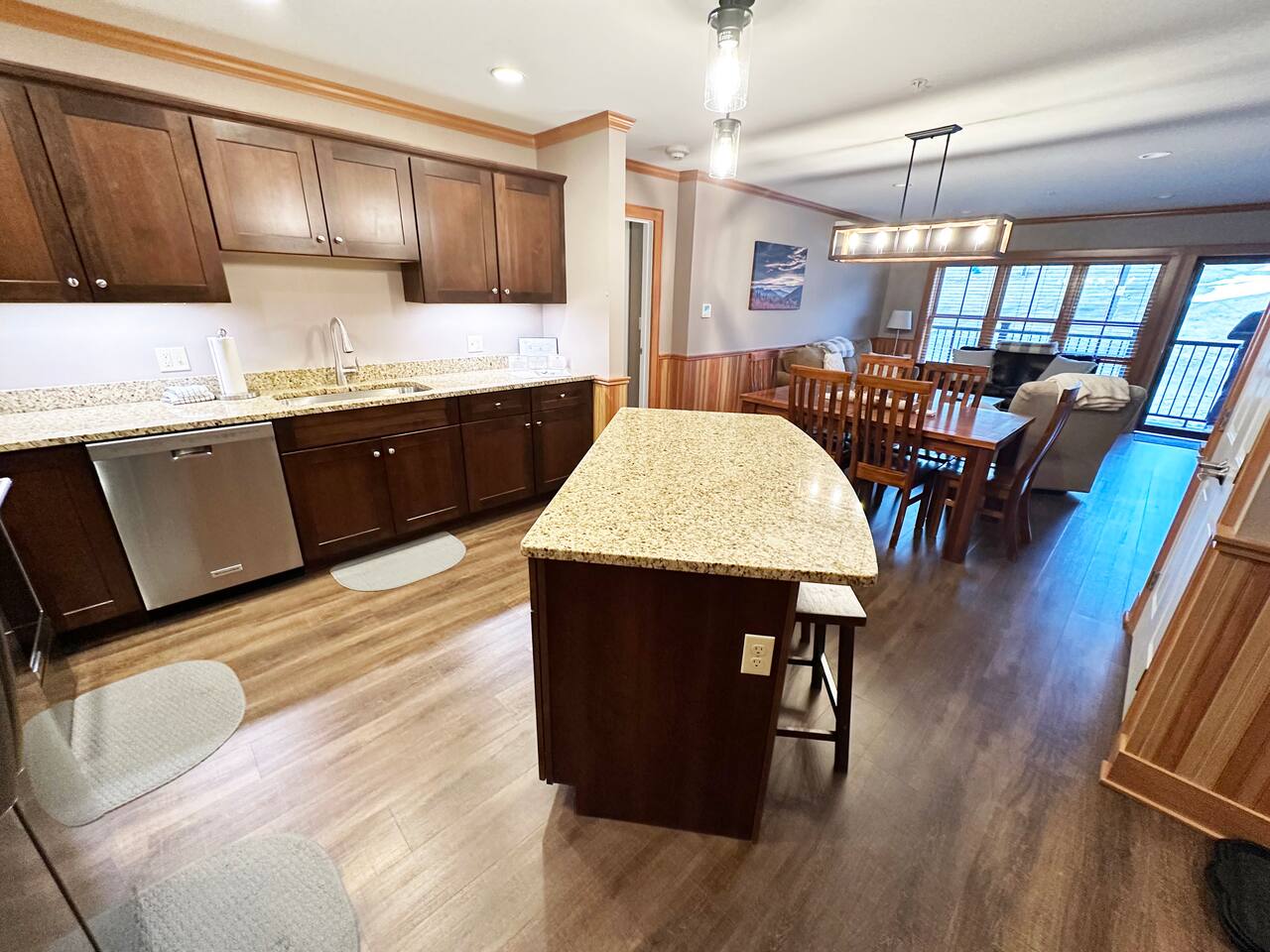 This cozy yet spacious 2-bedroom, 2.5-bathroom condo comfortably sleeps 4 guests, plus 2 more on a sofa bed. Enjoy the inviting mountain-style décor, warm up by the fireplace, and cook up a feast in the fully equipped kitchen with a large island. The washer/dryer in-unit adds convenience to your stay. After a day on the slopes, unwind with access to the resort’s heated pool, hot tub, and fitness room. Store your gear easily in the ski lockers on the first floor. A covered porch offers the perfect spot to relax and take in the breathtaking mountain views. Located just a short distance from downtown North Conway Village, you’re close to charming shops, restaurants, and year-round activities. The condo includes assigned parking for one car plus visitor parking for additional vehicles. Whether you're here for skiing, hiking, or simply relaxing in the mountains, this condo is the ultimate four-season getaway! LIVING AREA The open living area includes a living room with sleeper sofa, fireplace, and porch overlooking Cranmore Mountain. The dining table includes seating for 6. The fully-applianced kitchen features an island, fridge, range, microwave, and coffeemaker. A half bath and washer/dryer provide added convenience. MASTER BEDROOM The master bedroom suite includes a king-sized bed and large en suite bathroom with double sink and shower/tub combo. SECOND BEDROOM The second bedroom is setup as a mini suite with two twin beds, a small sink, full bath with tub/shower combo, and loveseat sitting area. COMMUNITY AMENITIES Ski Lockers - This building is ski-in/ski-out. Unload your gear from your car and store it in the ski lockers conveniently located on the first floor of the building. Located right at Cranmore Mountain, you can walk right over to the lifts. Gym - A fitness room is available with a variety of equipment including free weights, treadmills, and cycling machines. Pool - Enjoy a refreshing dip in the community pool or hot tub located just a short walk from the building. Parking - There is one dedicated parking spot for this unit and additional spaces available in the visitor parking area. Elevator - This building includes an elevator.