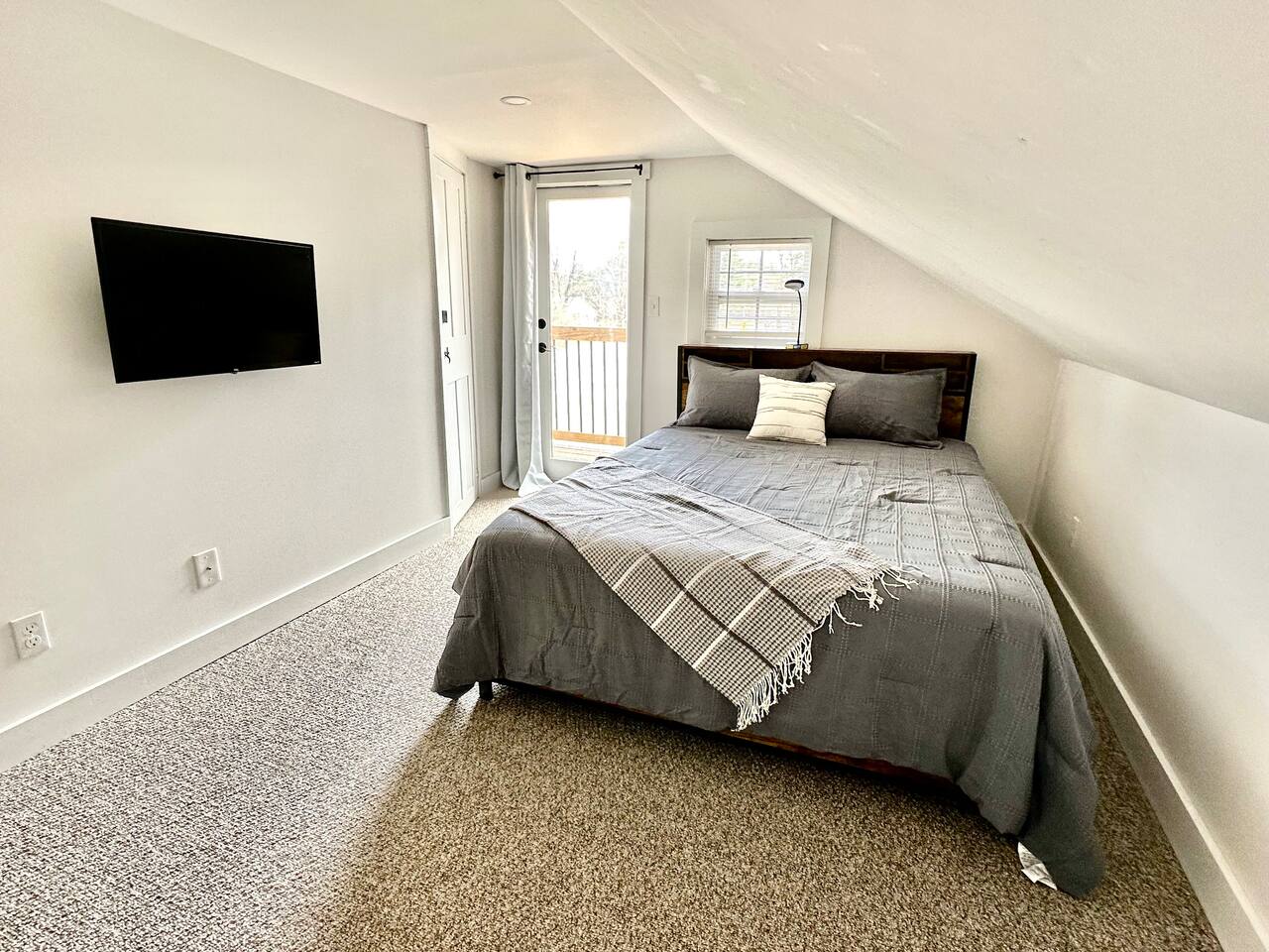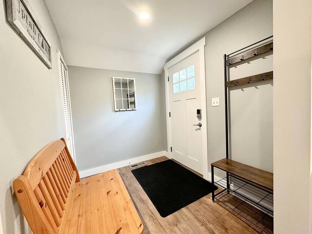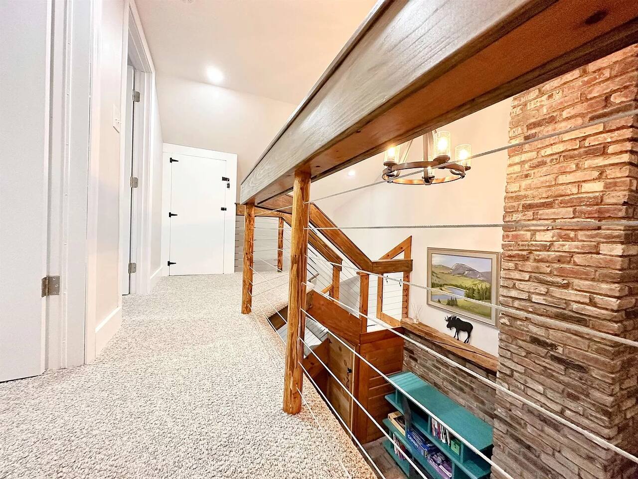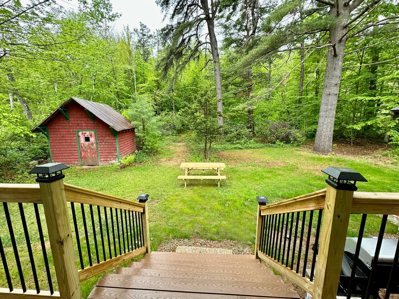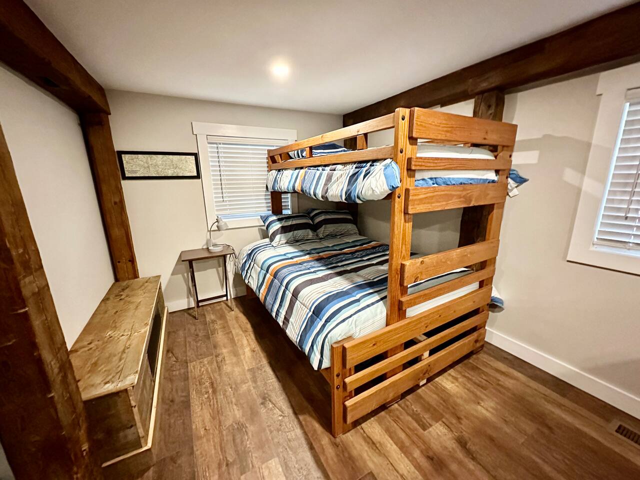 Located along the Kancamagus Highway in Conway, NH, The Almost There combines modern comfort with traditional charm. This delightful three-bedroom, two-and-a-half-bath retreat is located on multiple levels with plenty of spaces to both tuck away and gather together. Children will love the unique layout, which makes their own rooms feel like cozy nooks with slanted ceilings and three twin beds. Adults will appreciate the cottage’s interior highlights, such as the exposed brick and beams, which add a touch of rustic charm to the modern abode. The Kancamagus Highway is considered a national treasure and one of the best places in the world to watch the leaves change color in the fall, but really it is beautiful any time of year. The Almost There is situated right in the center of this notable area and provides a great home base as you explore ski resorts, state parks, rivers, hiking, biking, and walking trails, as well as charming downtown areas with shops and restaurants. MAIN LEVEL Leave your gear in the mudroom and enter the modern kitchen with high ceilings and modern amenities. You will also find a cute breakfast nook tucked under a window with two bar stools. The kitchen is attached to the dining area for easy meal prep and dining. The dining table is surrounded by bench seating, which the kids will love. On this level you will find the primary bedroom with ensuite bath and large laundry room. The primary bedroom offers ample space and a luxurious bath with double sinks. A few steps up, leads you to the large living room with additional sleeping and sitting areas. SECOND FLOOR The second floor has two bedrooms. The first bedroom has its own balcony. The second bedroom is a fun space for kids with slanted ceilings, built-ins, and three twin beds. BEDROOMS First Floor Primary Bedroom | 1 queen bed with en suite bath Second Floor Bedroom 2 - 1 queen bed Second Floor Bedroom 3 - 3 twin beds Extra Sleeping Area - Twin over full bunk beds off living room on First Floor PARKING & OUTDOOR – Parking for 3-4 cars in the driveway – Mudroom with space for summer and winter gear – Upper deck off second-floor bedroom INDOOR – Full eat-in kitchen – Breakfast nook with bar stools – TVs in living room, primary bedroom, and one second-floor bedroom – Washer and dryer on the first floor – Wireless internet – Foosball table
