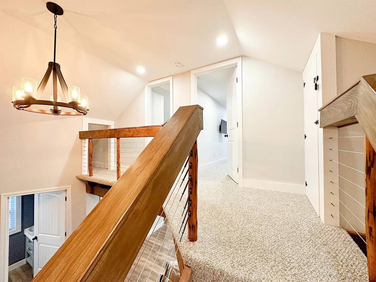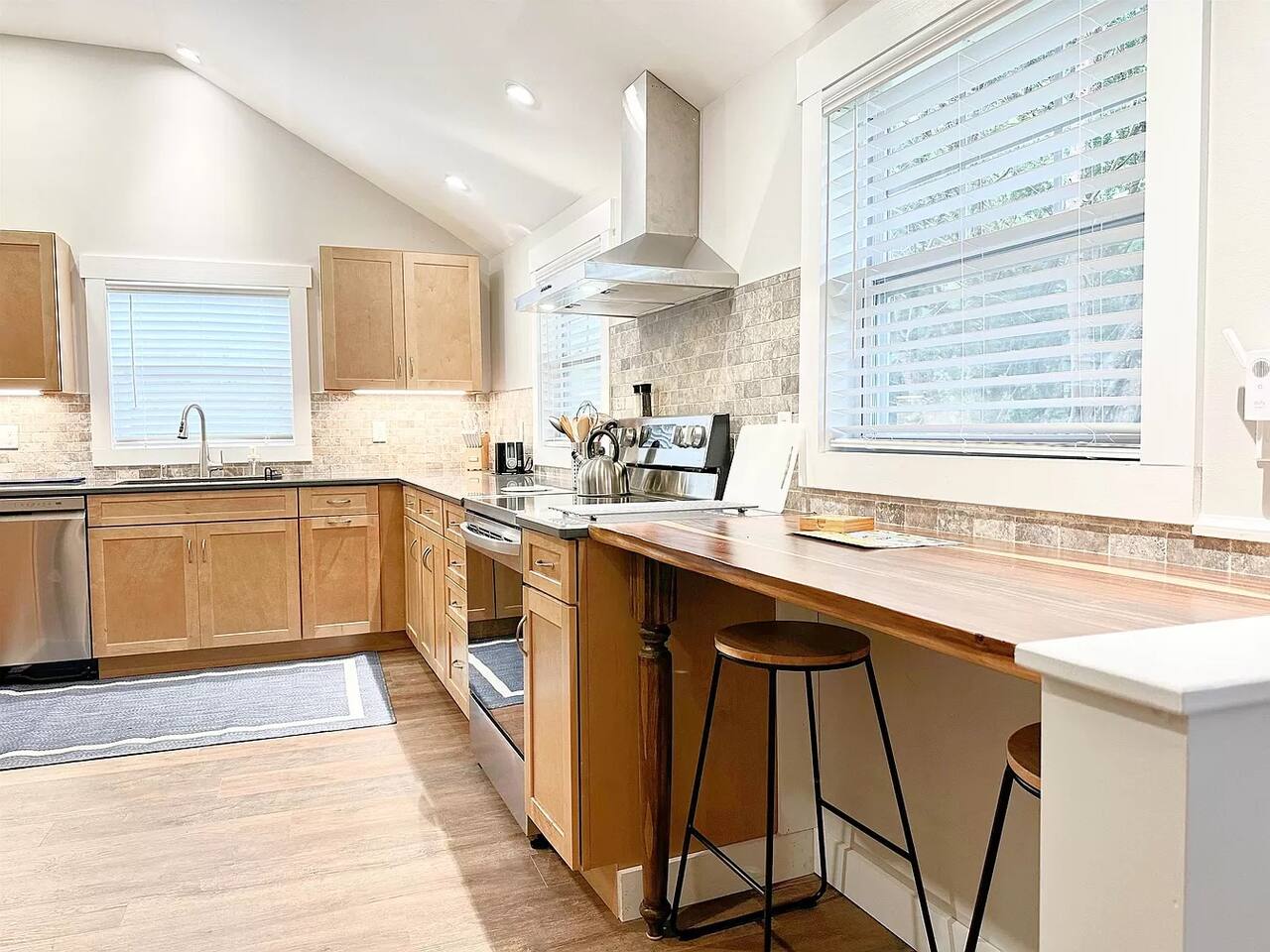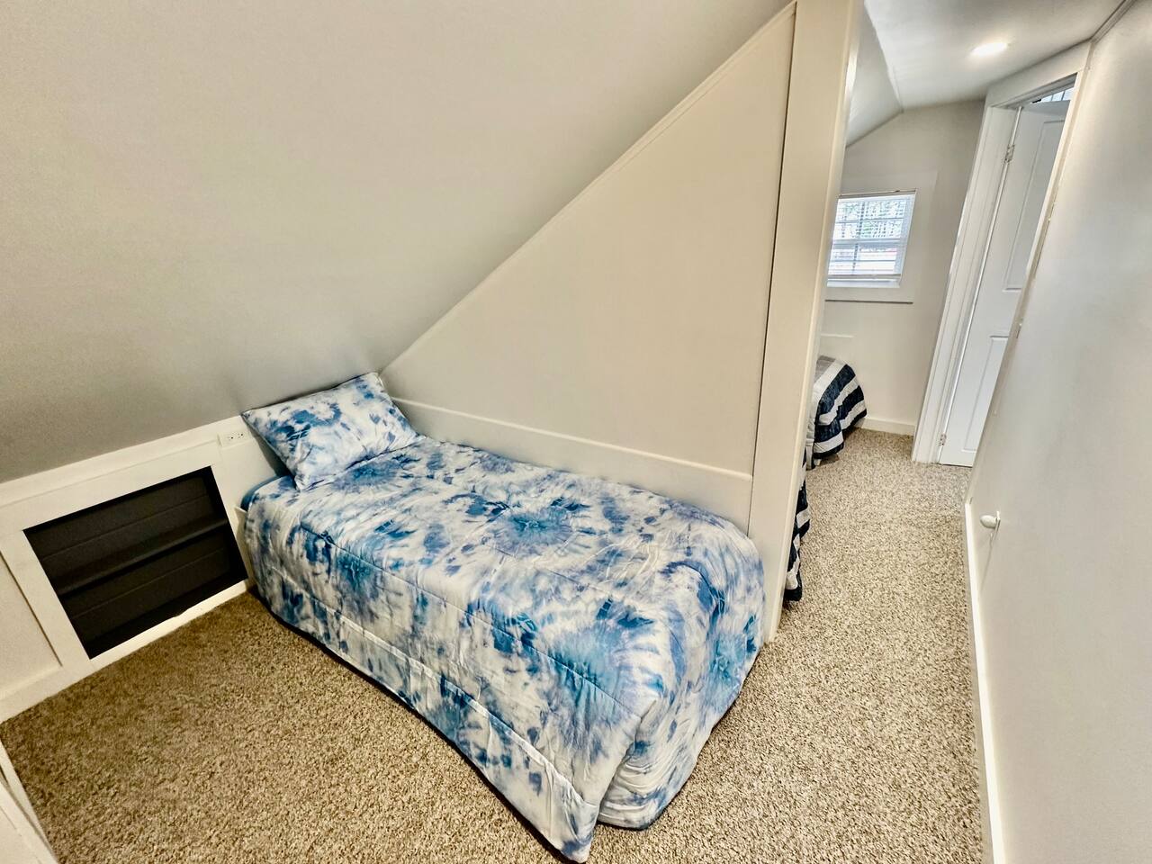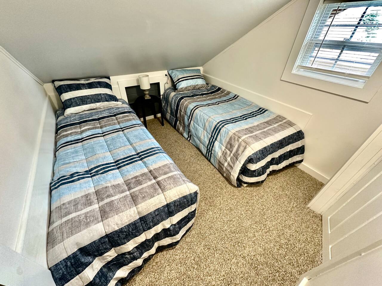 Located along the Kancamagus Highway in Conway, NH, The Almost There combines modern comfort with traditional charm. This delightful three-bedroom, two-and-a-half-bath retreat is located on multiple levels with plenty of spaces to both tuck away and gather together. Children will love the unique layout, which makes their own rooms feel like cozy nooks with slanted ceilings and three twin beds. Adults will appreciate the cottage’s interior highlights, such as the exposed brick and beams, which add a touch of rustic charm to the modern abode. The Kancamagus Highway is considered a national treasure and one of the best places in the world to watch the leaves change color in the fall, but really it is beautiful any time of year. The Almost There is situated right in the center of this notable area and provides a great home base as you explore ski resorts, state parks, rivers, hiking, biking, and walking trails, as well as charming downtown areas with shops and restaurants. MAIN LEVEL Leave your gear in the mudroom and enter the modern kitchen with high ceilings and modern amenities. You will also find a cute breakfast nook tucked under a window with two bar stools. The kitchen is attached to the dining area for easy meal prep and dining. The dining table is surrounded by bench seating, which the kids will love. On this level you will find the primary bedroom with ensuite bath and large laundry room. The primary bedroom offers ample space and a luxurious bath with double sinks. A few steps up, leads you to the large living room with additional sleeping and sitting areas. SECOND FLOOR The second floor has two bedrooms. The first bedroom has its own balcony. The second bedroom is a fun space for kids with slanted ceilings, built-ins, and three twin beds. BEDROOMS First Floor Primary Bedroom | 1 queen bed with en suite bath Second Floor Bedroom 2 - 1 queen bed Second Floor Bedroom 3 - 3 twin beds Extra Sleeping Area - Twin over full bunk beds off living room on First Floor PARKING & OUTDOOR – Parking for 3-4 cars in the driveway – Mudroom with space for summer and winter gear – Upper deck off second-floor bedroom INDOOR – Full eat-in kitchen – Breakfast nook with bar stools – TVs in living room, primary bedroom, and one second-floor bedroom – Washer and dryer on the first floor – Wireless internet – Foosball table