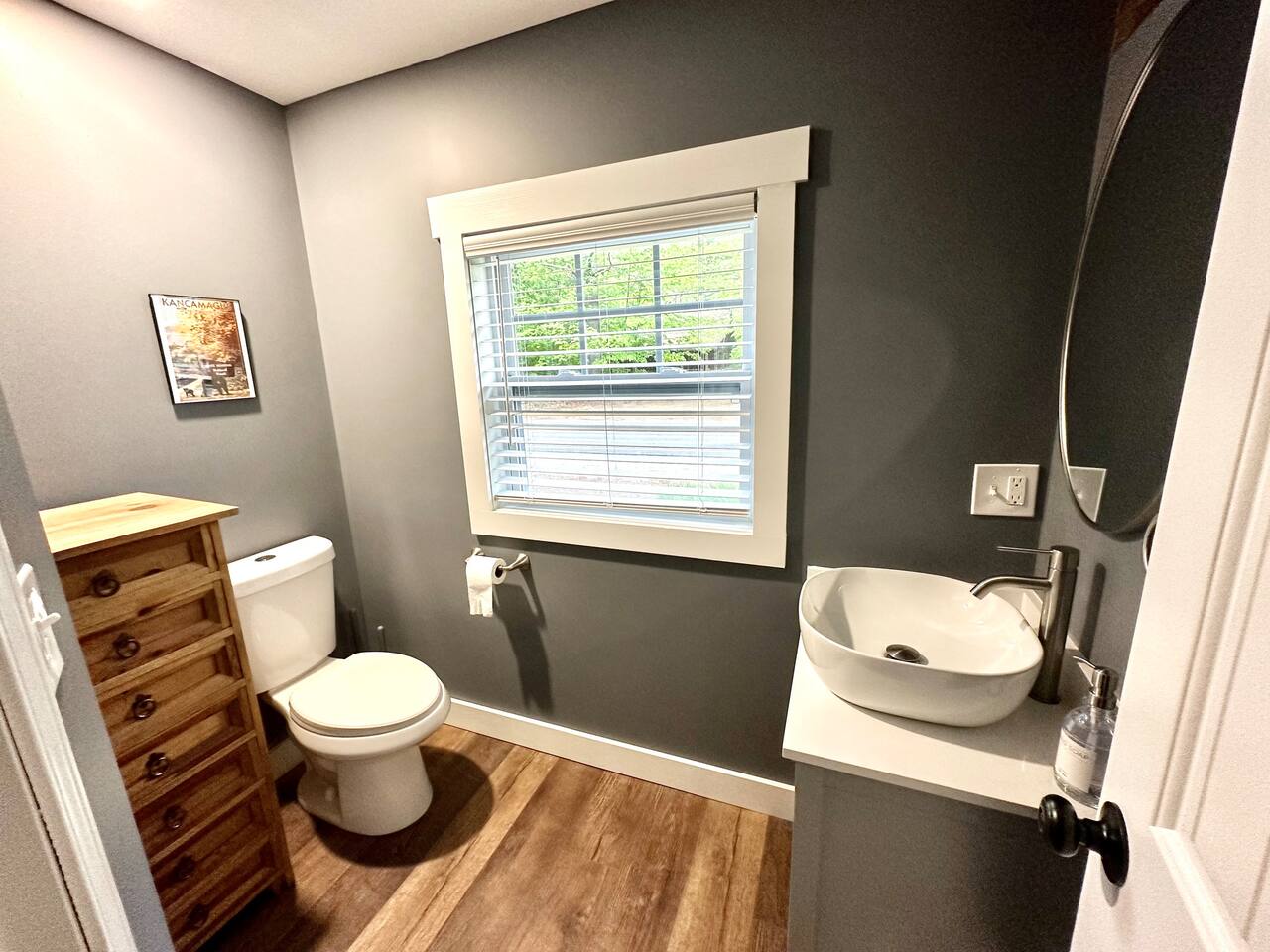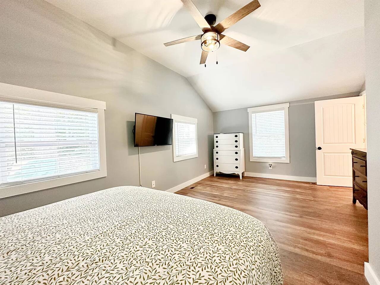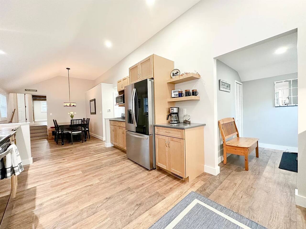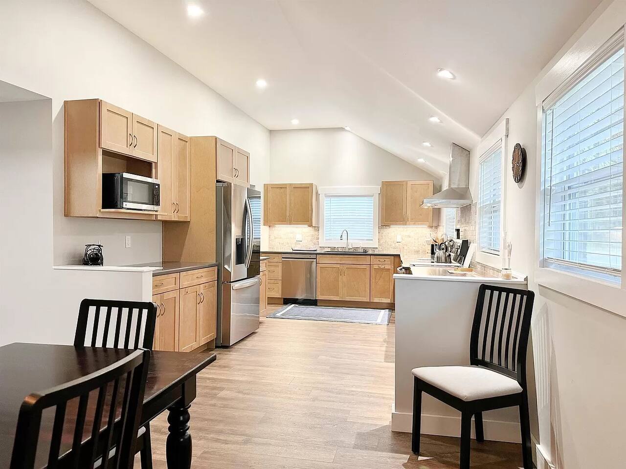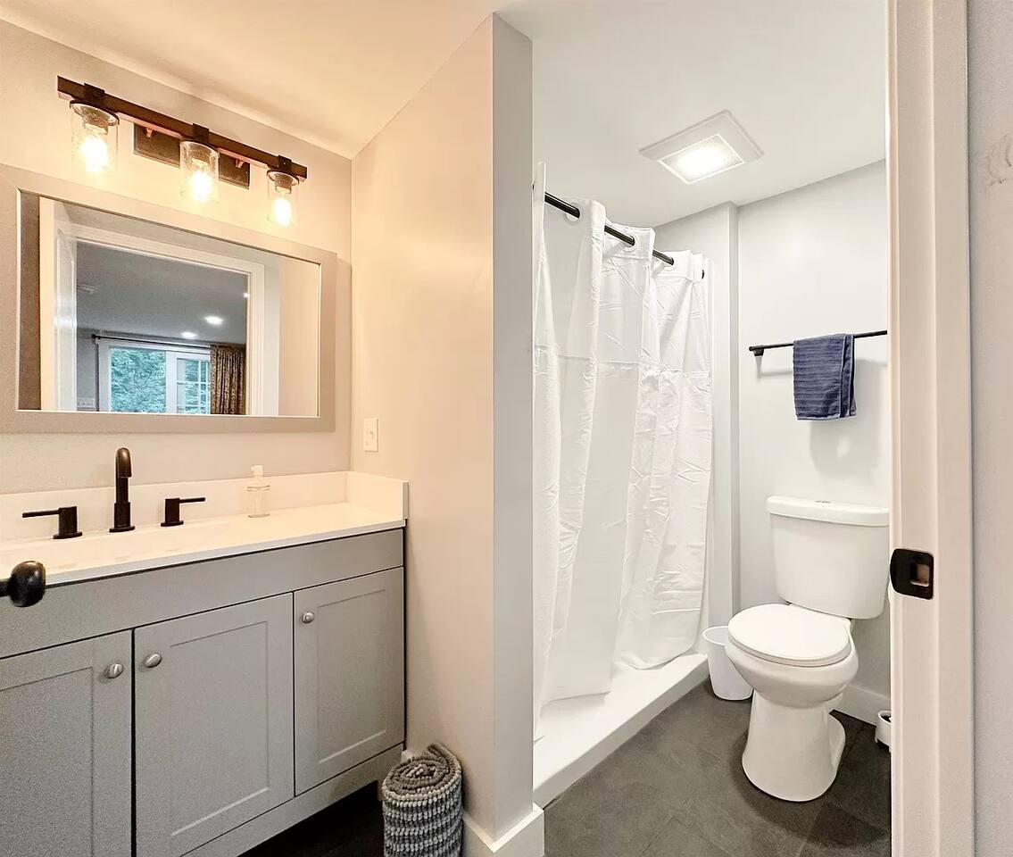 Located along the Kancamagus Highway in Conway, NH, The Almost There combines modern comfort with traditional charm. This delightful three-bedroom, two-and-a-half-bath retreat is located on multiple levels with plenty of spaces to both tuck away and gather together. Children will love the unique layout, which makes their own rooms feel like cozy nooks with slanted ceilings and three twin beds. Adults will appreciate the cottage’s interior highlights, such as the exposed brick and beams, which add a touch of rustic charm to the modern abode. The Kancamagus Highway is considered a national treasure and one of the best places in the world to watch the leaves change color in the fall, but really it is beautiful any time of year. The Almost There is situated right in the center of this notable area and provides a great home base as you explore ski resorts, state parks, rivers, hiking, biking, and walking trails, as well as charming downtown areas with shops and restaurants. MAIN LEVEL Leave your gear in the mudroom and enter the modern kitchen with high ceilings and modern amenities. You will also find a cute breakfast nook tucked under a window with two bar stools. The kitchen is attached to the dining area for easy meal prep and dining. The dining table is surrounded by bench seating, which the kids will love. On this level you will find the primary bedroom with ensuite bath and large laundry room. The primary bedroom offers ample space and a luxurious bath with double sinks. A few steps up, leads you to the large living room with additional sleeping and sitting areas. SECOND FLOOR The second floor has two bedrooms. The first bedroom has its own balcony. The second bedroom is a fun space for kids with slanted ceilings, built-ins, and three twin beds. BEDROOMS First Floor Primary Bedroom | 1 queen bed with en suite bath Second Floor Bedroom 2 - 1 queen bed Second Floor Bedroom 3 - 3 twin beds Extra Sleeping Area - Twin over full bunk beds off living room on First Floor PARKING & OUTDOOR – Parking for 3-4 cars in the driveway – Mudroom with space for summer and winter gear – Upper deck off second-floor bedroom INDOOR – Full eat-in kitchen – Breakfast nook with bar stools – TVs in living room, primary bedroom, and one second-floor bedroom – Washer and dryer on the first floor – Wireless internet – Foosball table