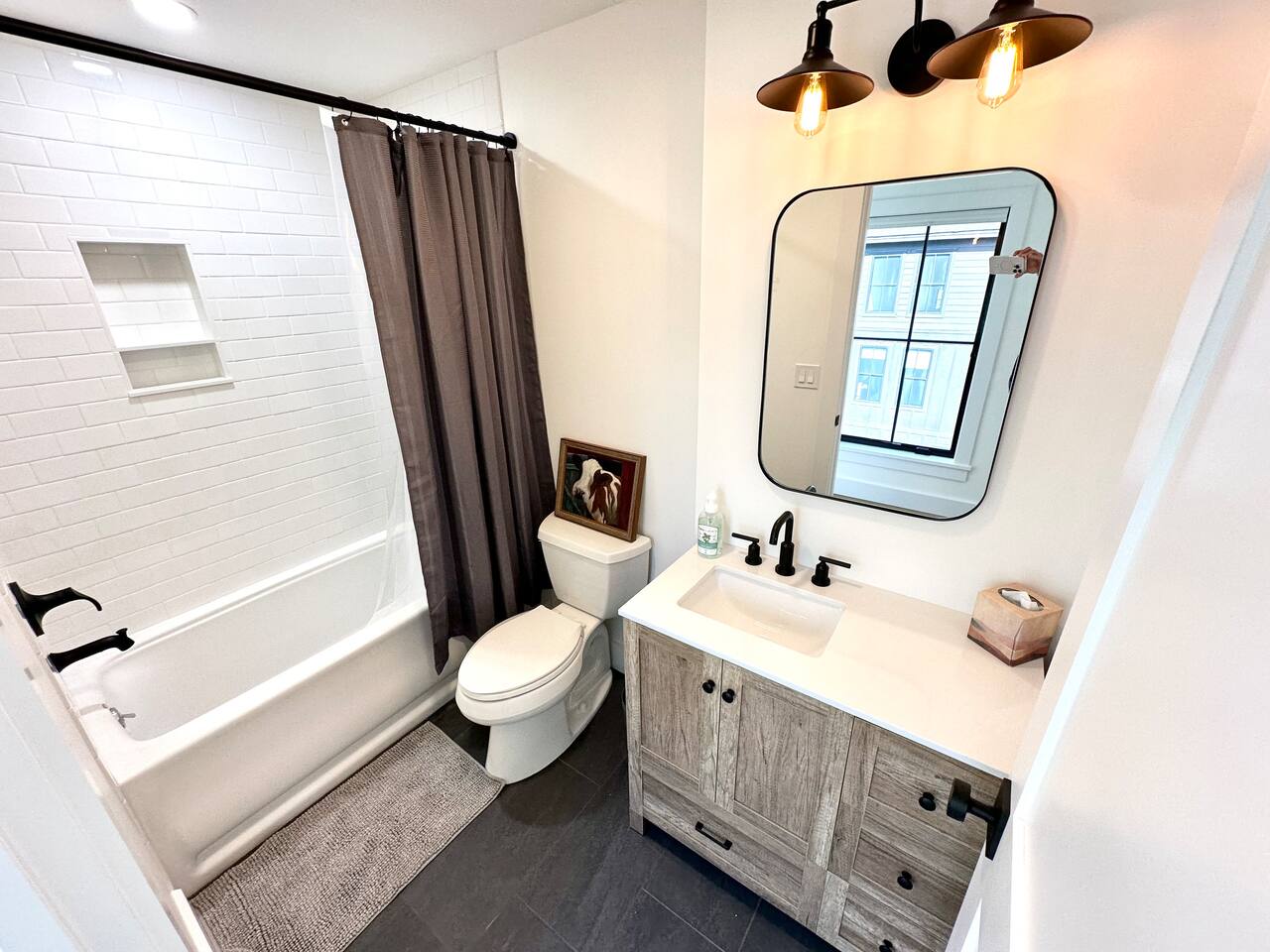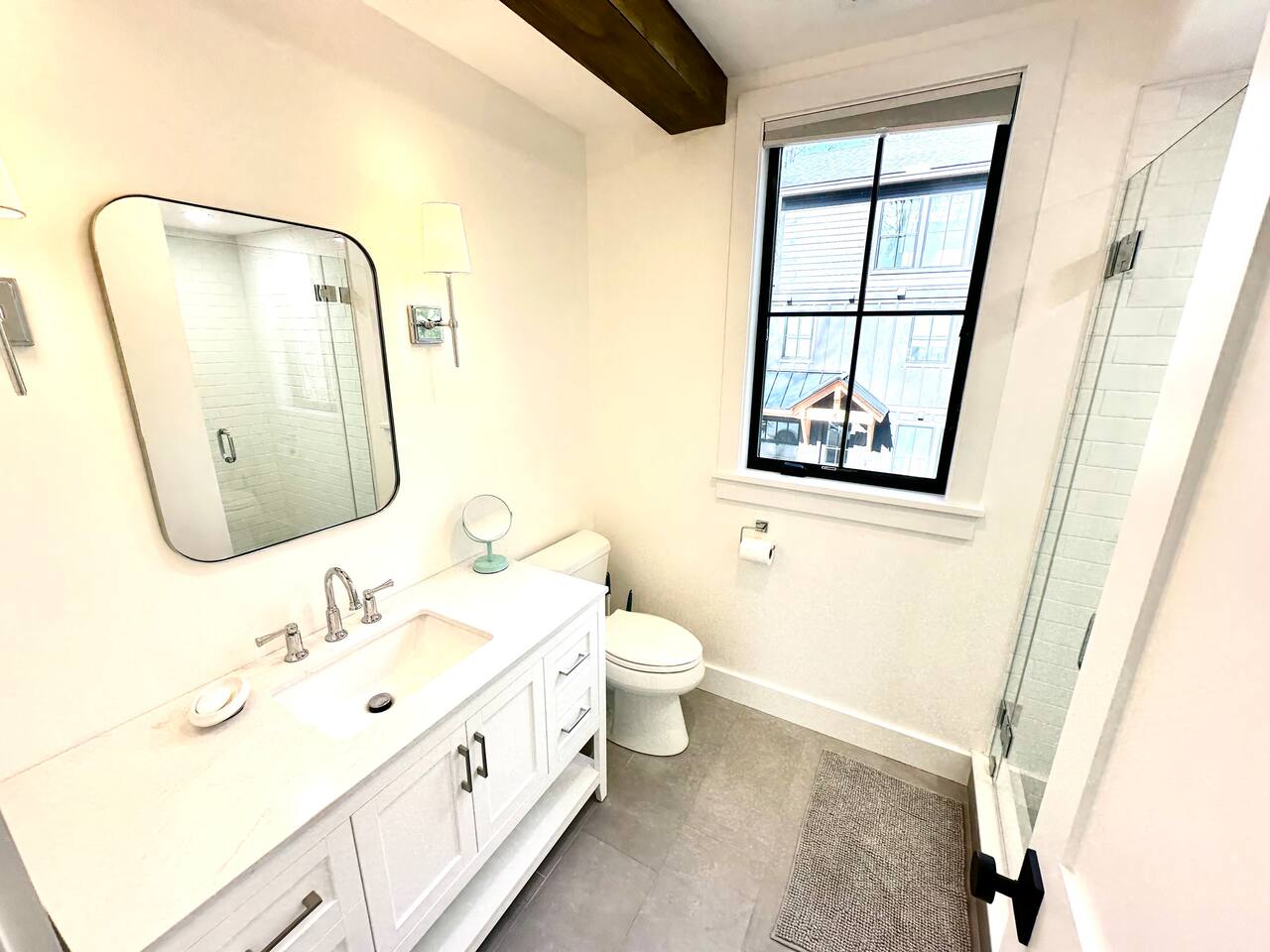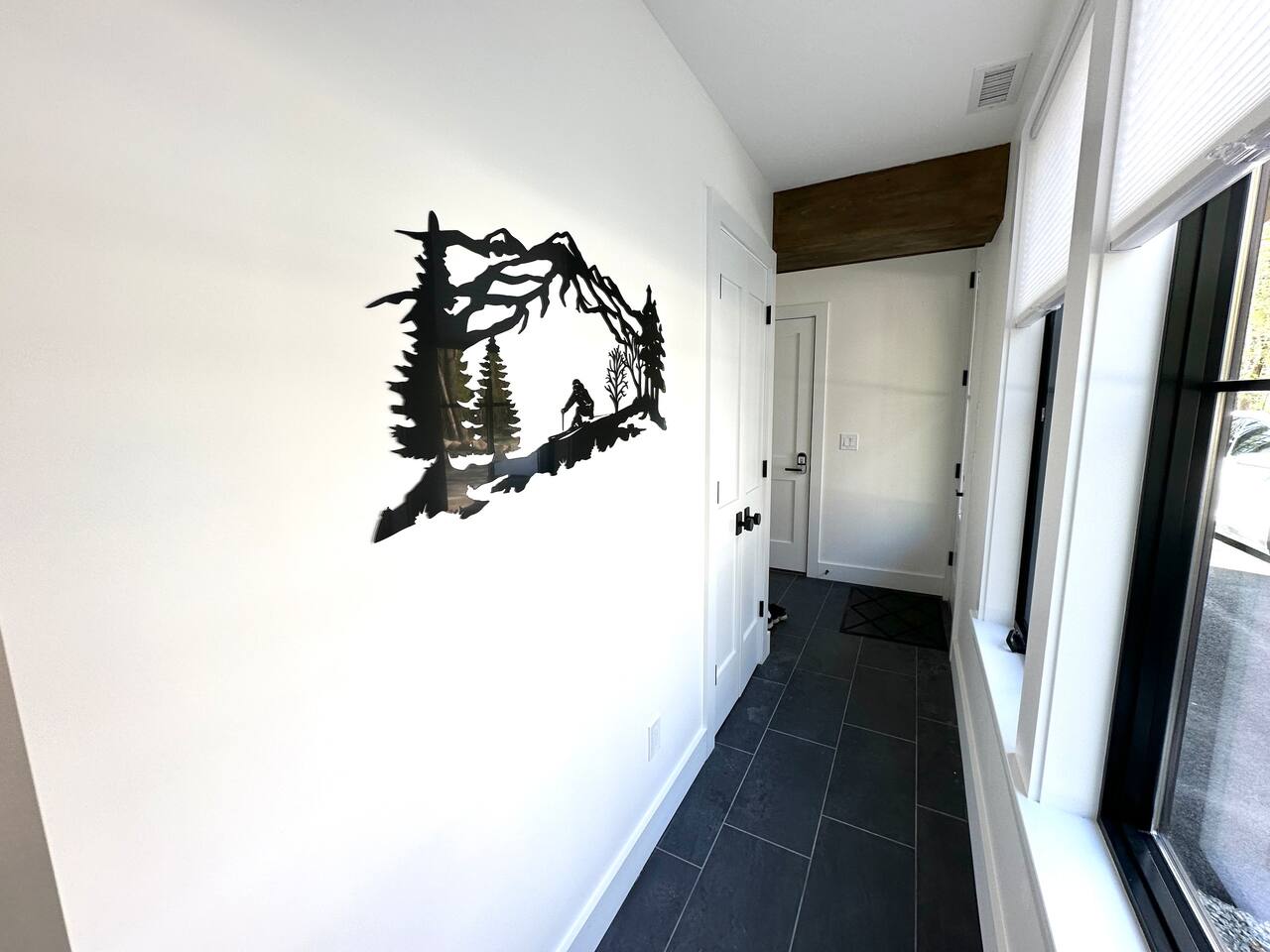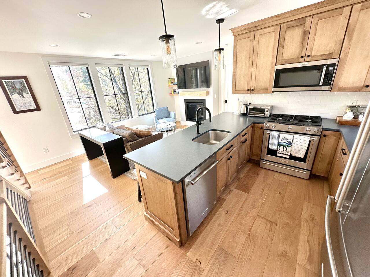 Discover the perfect blend of convenience and tranquility in this modern townhouse, steps from Cranmore Mountain and downtown North Conway. Enjoy year-round adventures from this new unit along a peaceful stream with 3 living levels, 3 bedrooms, 2 living rooms, and a sunlit kitchen. Take in the scenic views from the upper deck, and enjoy the convenience of garage parking. 1ST LEVEL - Garage - Mudroom - Family Room - Half bath 2ND LEVEL - Living room - Kitchen - Half bath - Master bedroom - Master bath with shower 3RD LEVEL - Two bedrooms - Full bath - Deck BEDROOMS - Master Bedroom: Queen bed with bath and walk-in closet - 2nd Bedroom: Two sets of twin bunk beds plus one trundle - 3rd Bedroom: Queen bed PARKING Parking is available for 3 cars maximum: 1 garage space for a sedan, 1 space on the side of the building, plus one additional space in front of the garage. STAIRS Please note that this is a multi-level townhouse so there are multiple stairs to climb. xSTR DETAILS & SUPPLIES - Bedding: Bed Linens and bath towels - Toiletries: shampoo, conditioner, body wash, and cotton swabs in each bathroom - Kitchen supplies: pots & pans, dinnerware, bakeware, plasticware for children, toaster, blender, coffee maker (drip coffee), glassware and more! - Paper goods: paper towels, toilet paper, dishwasher tablets, laundry pods, and trash bags - Coffee/Tea: A few starter supplies for coffee and tea.